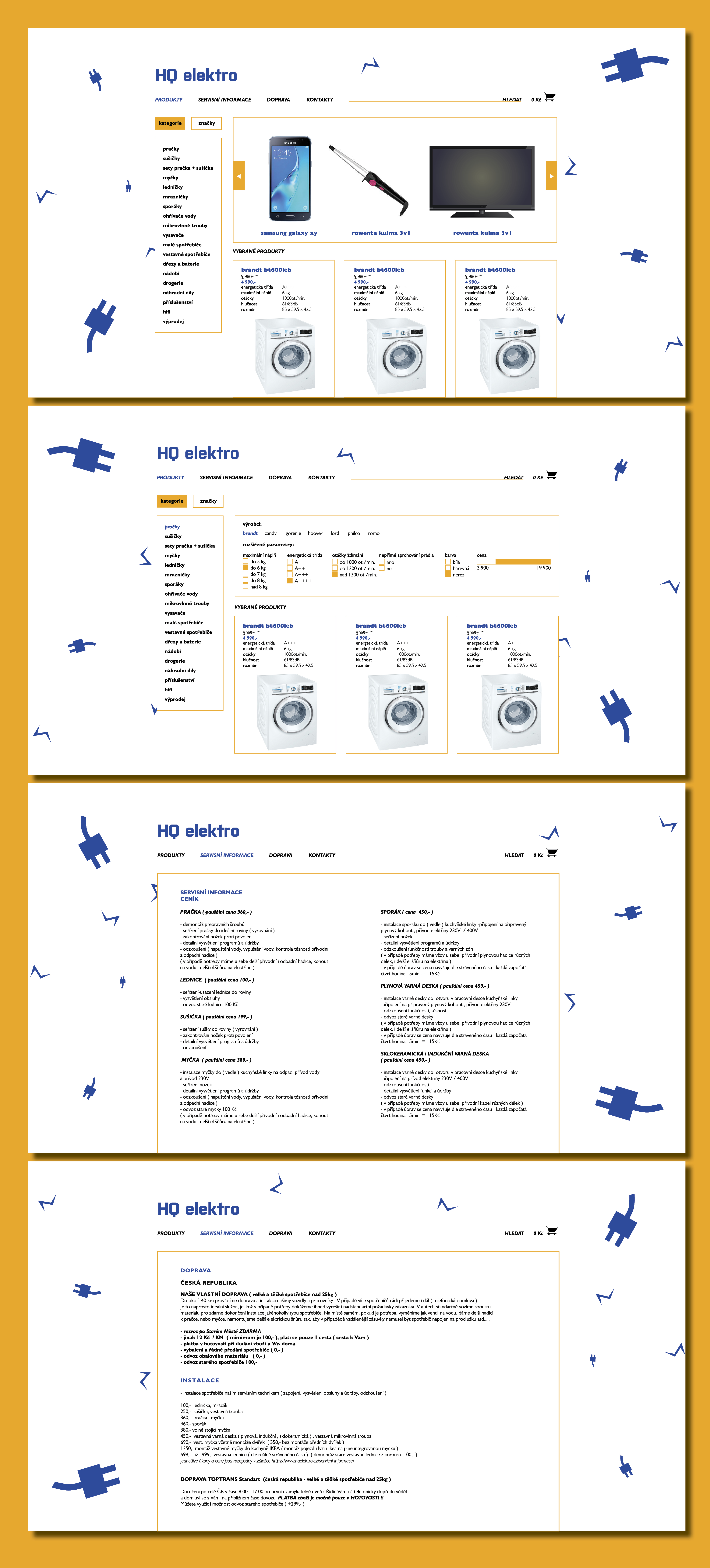 Hlavní cíl bylo zjednodušit a vyčistit web. Výrazná modrá doplňuje typografické logo, které rovným vycentrovaným chvostem nabývá podoby koncovky u kabelů spotřebičů. Doplňkovou barvou žlutou jsou tvořeny plochy, na kterých vidíme produkty nebo informace. Použitý je jeden font v různých řezech, důležité informace mají barevné odlišení. Z webu zmizely rušivé prvky, loga firem se ukrývají