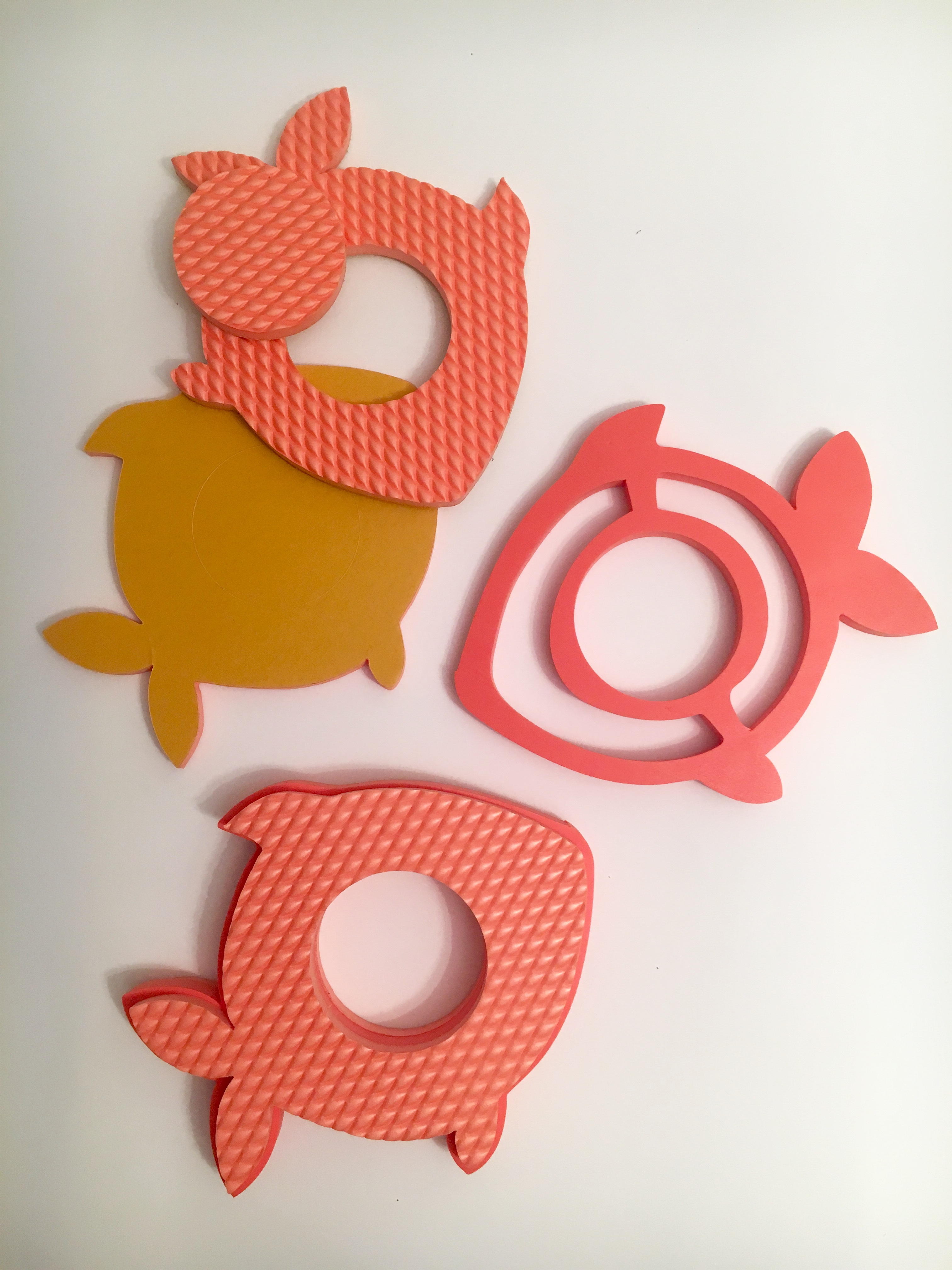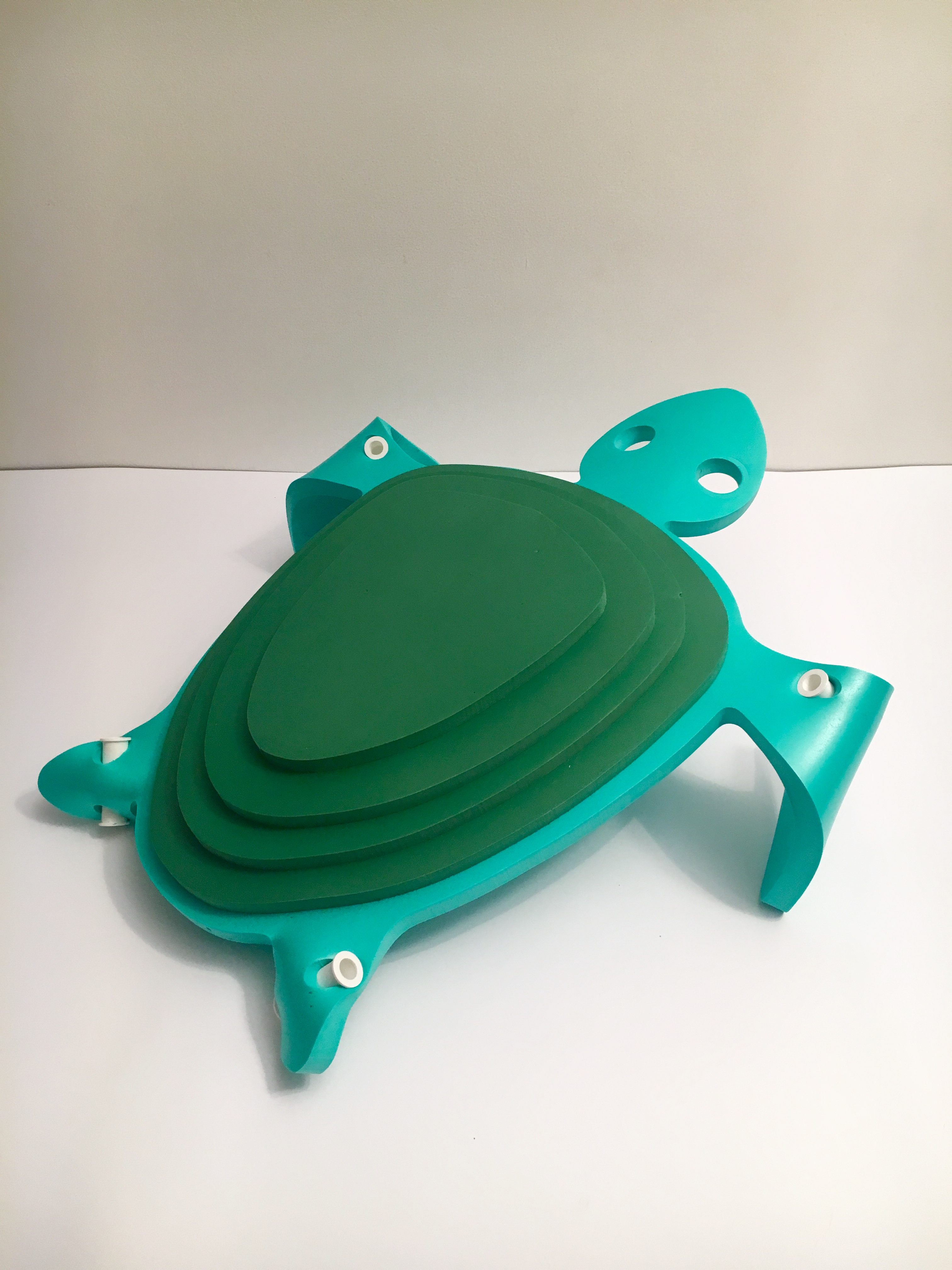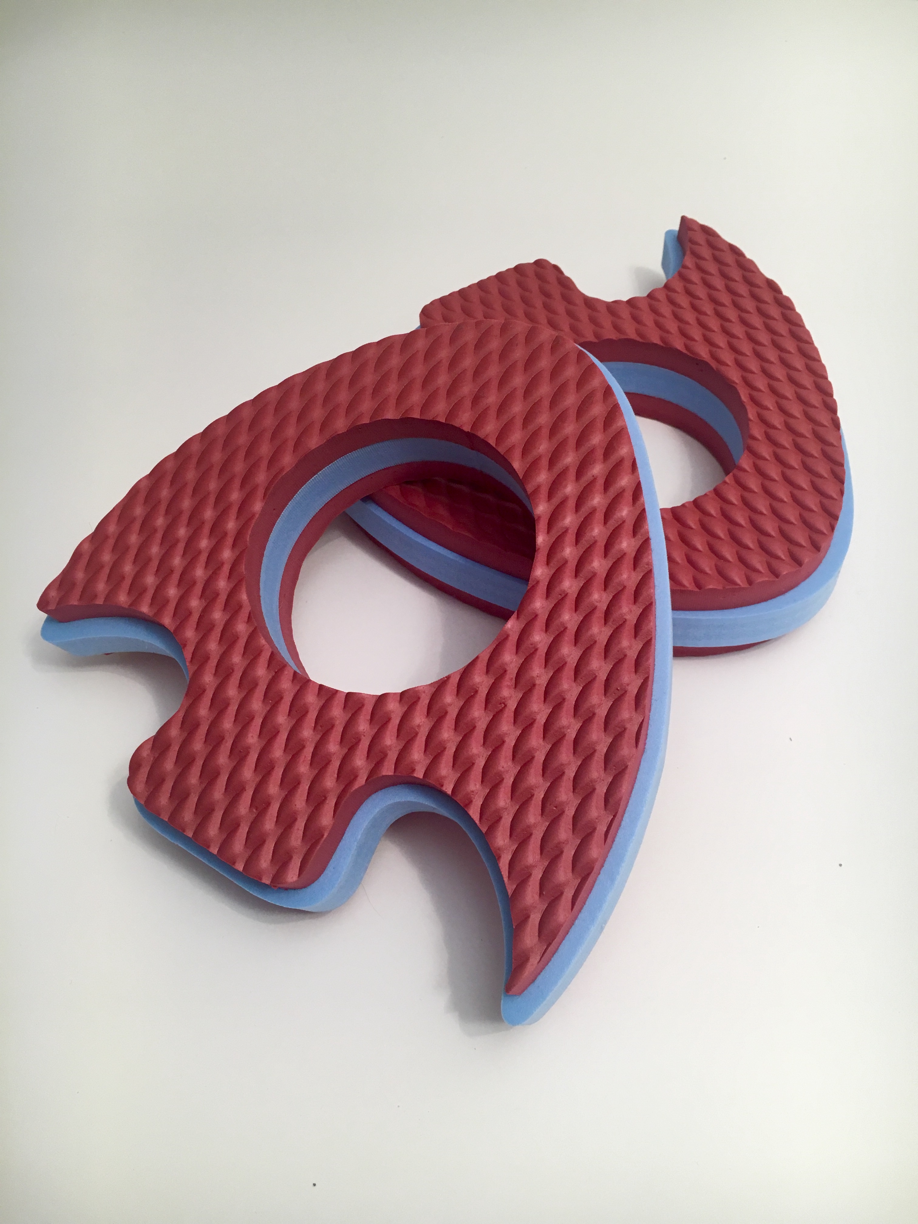 v tom, že jsou tvarované do prostoru. Stávající řešení jsou většinou vyráběna pouze výsekovou formou. Pomůcky vznikají vrstvením a nasledným lepením na sebe. Rozdílnými tvary vrstev získavají plasticitu. Ve vnitřních vrstvách zůstavá dutý prostor, který výrazně zvyšuje nadlehčení ve vodě.