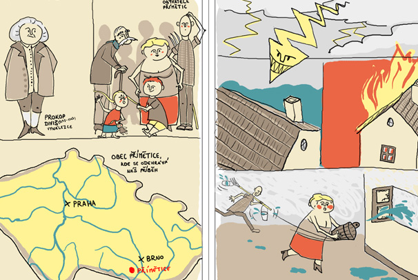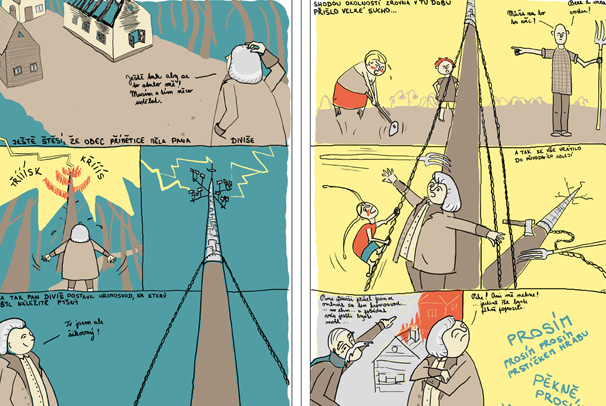 Komiks o tom, kterak pan Diviš vynalezl hromosvod.