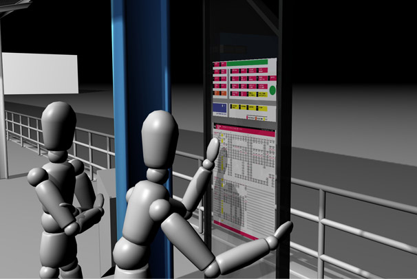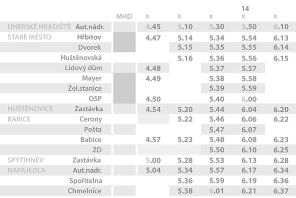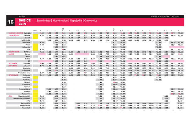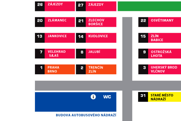 Zadáním bylo vytvořit informační systém pro autobusové nádraží v Uherském Hradišti, který by spojoval jednotný vizuální styl. Protože se jedná o praktický úkol, design jako služba lidem, bylo důležité najít kompromis mezi vizuální a uživatelskou stránkou. Rozhodl jsem se pro jednoduchý geometrický styl, dávající přednost barevné výraznosti před tvarovou. Body, na které jsem se nejvíce zaměřil byly čitelnost, rychlá orientace a přehlednost. Systém zahrnuje tyto prvky: Plánek nádraží, Jízdní řády, Abecední seznam všech časů odjezdů, Abecední seznam měst a stanovišť a Digitální tabuli s aktuálními odjezdy.