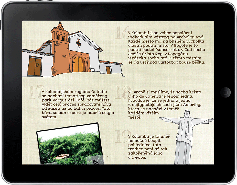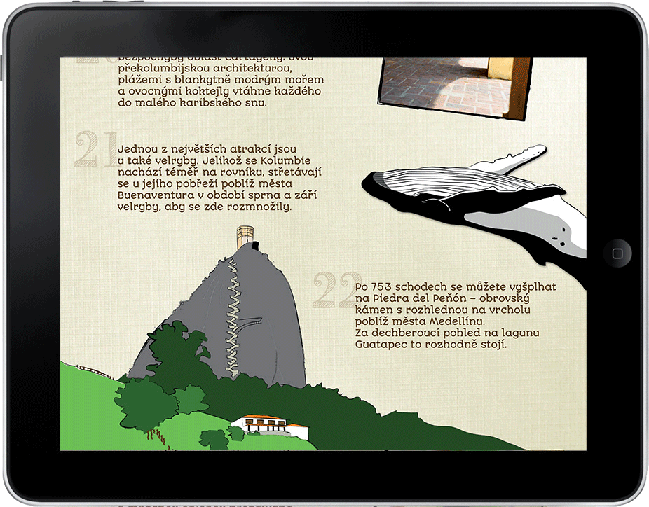 Digitální publikace pro platformu Apple iPad. Nová forma digitálního cestopisu poposující praktické informace z vybrané země v jižní Americe. Publikace obsahuje interaktivní galerie, videa a animace.