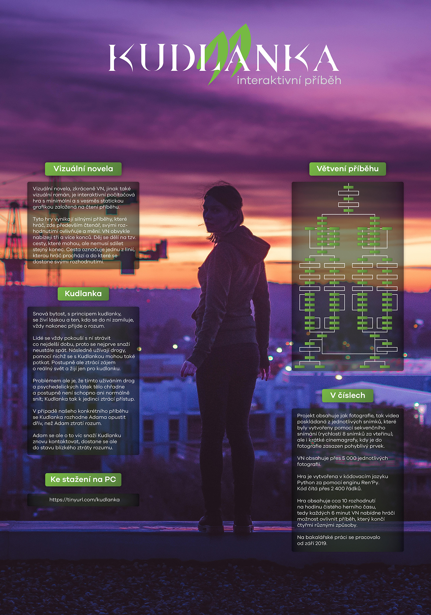 Výsledkem této bakalářské práce je autorský interaktivní příběh, který je hratelný na počítači, doplněný o vlastní fotografie, cinemagrafy a krátká videa.