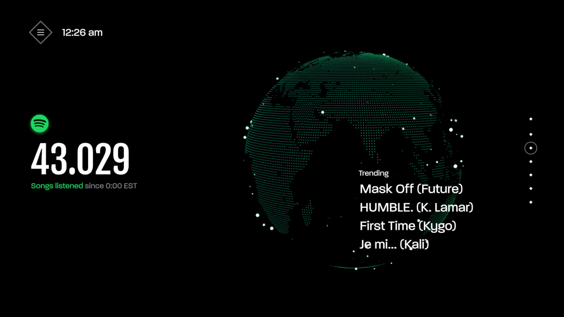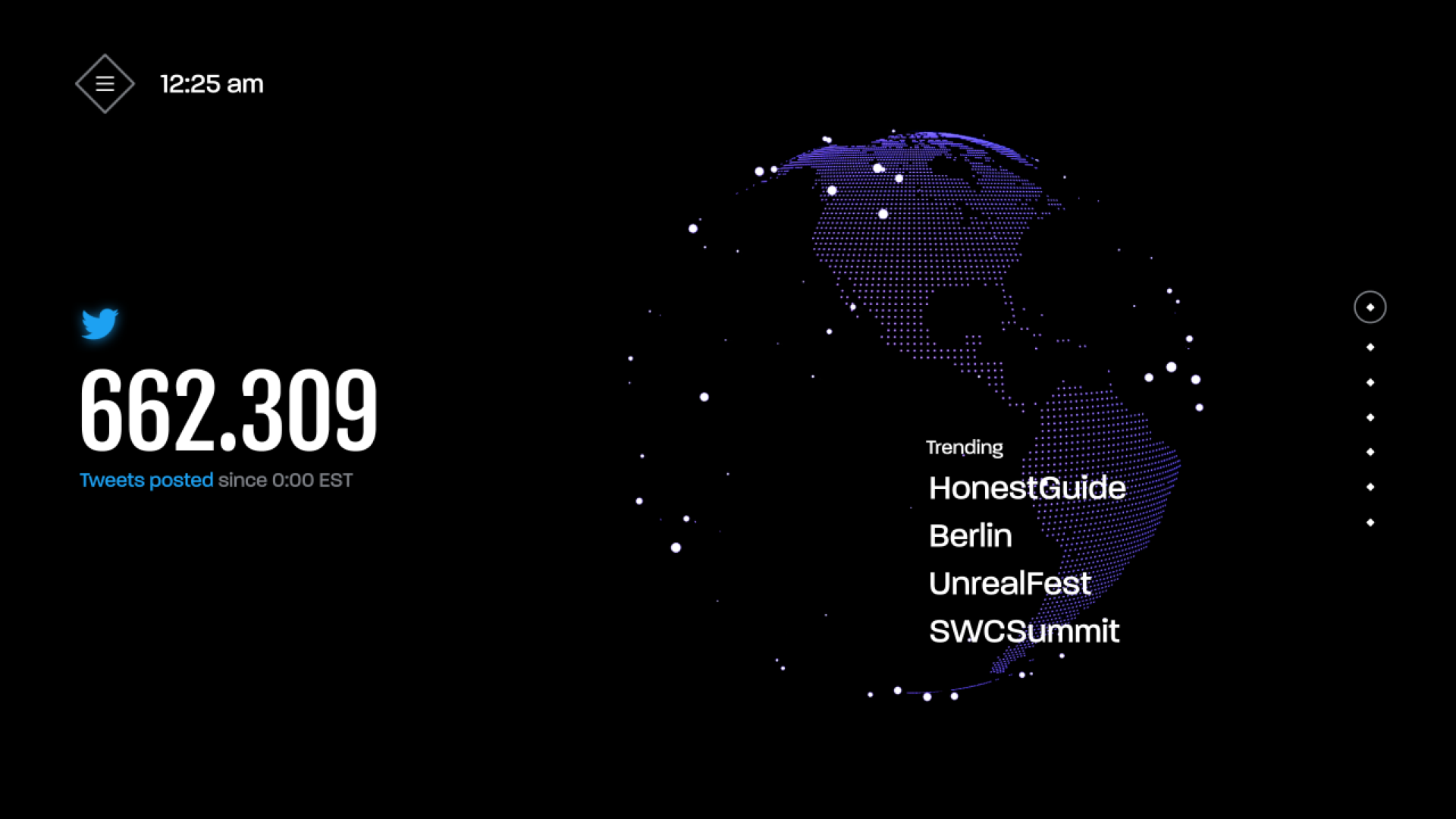 Vizuálne príťažlivý monitoring rôznych sociálnych či internetových stránok zobrazovaných v reálnom čase. Hierarchia informácii má jasne a hneď na prvý pohľad informovať používateľa pomocou výraznej číselnej hodnoty a rotojúcim glóbusom.