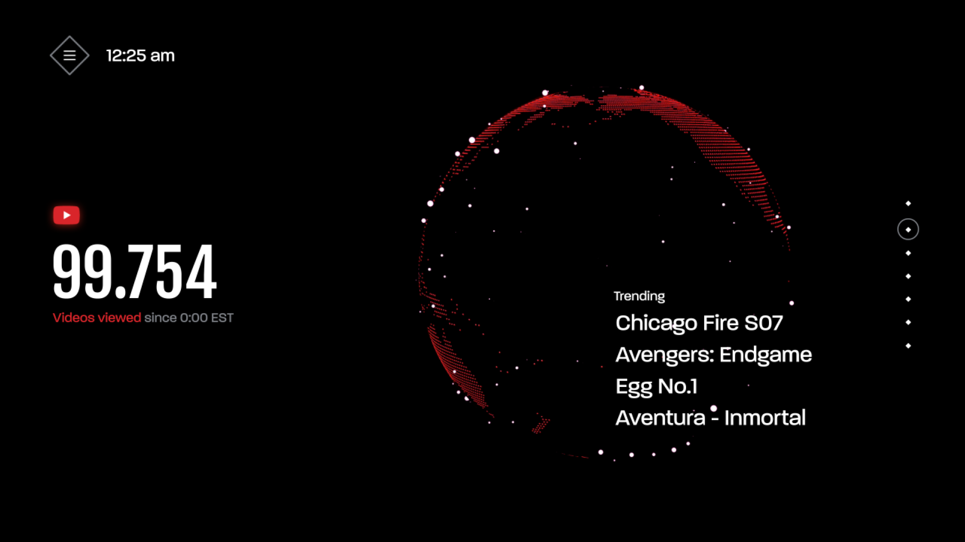 Druhá, nie tak vypovedajúca hodnota sú populárne videá - tweety - príspevky - výsledky vyhľadávania a pod. Vizuál je zasadený do tmavého prostredia. Užívateľ interaguje scrolovaním, prípadne použije menu, ktoré mu dáva prehľad všetkých dostupných stránok či sociálnych sietí.