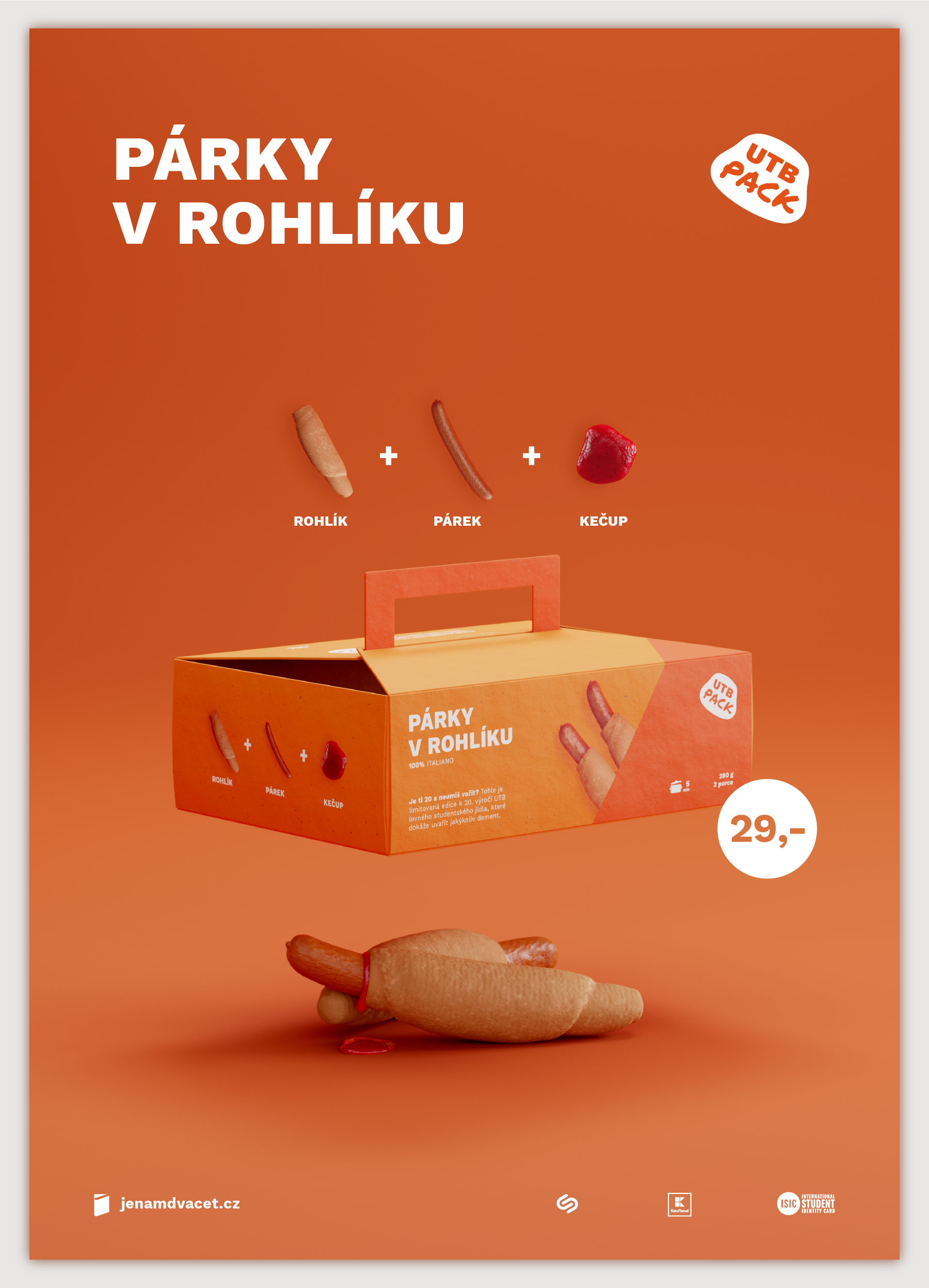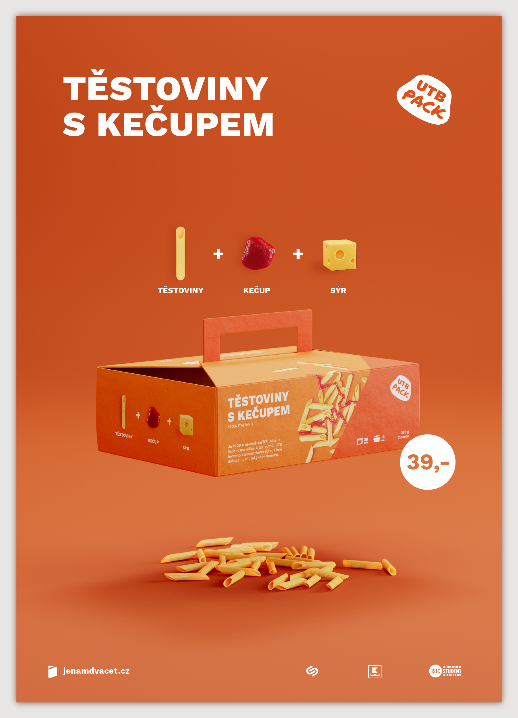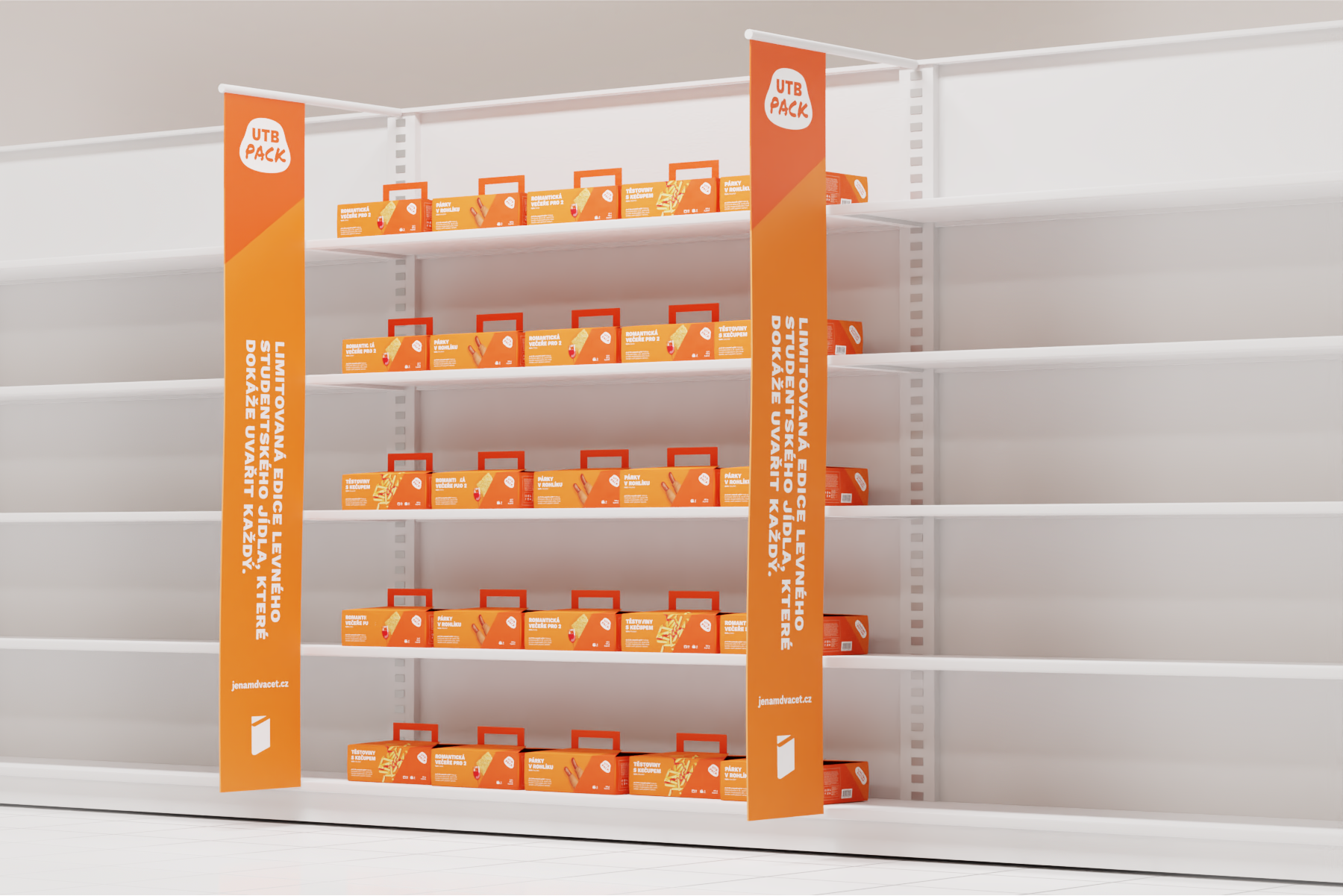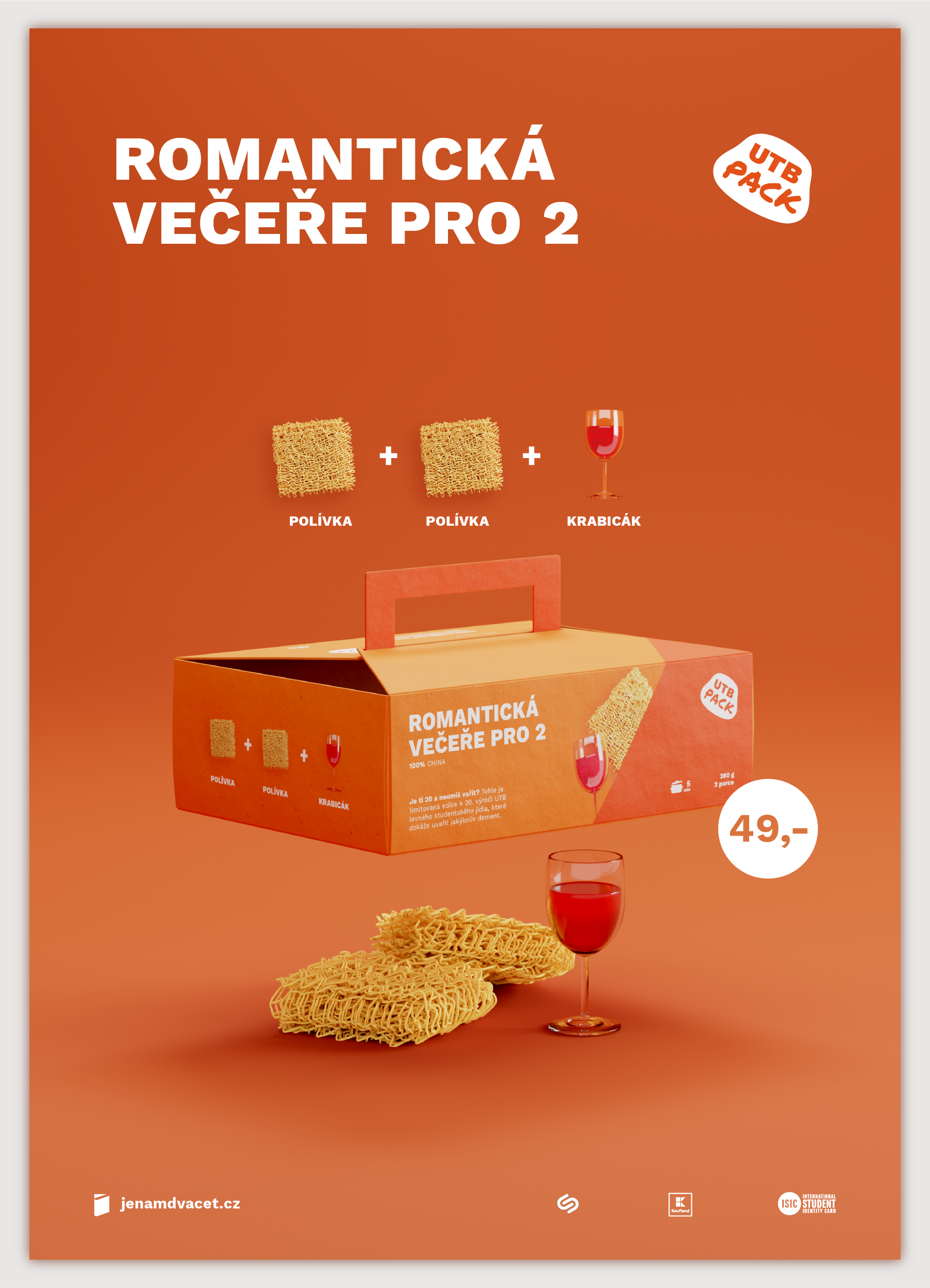 Je ti 20 a neumíš vařit? Tohle je limitovaná edice levného studentského jídla k výročí UTB, které dokáže uvařit jakýkoliv student. Rozhodl jsem se udělat obalový design na studentskou klasiku kterou každý student zná, ale hlavně si ji každý student může dovolit. Snažil jsem se aby design jak krabice tak na krabici působil levně, avšak šarmantně. Použil jsem klasické UTB barvy.