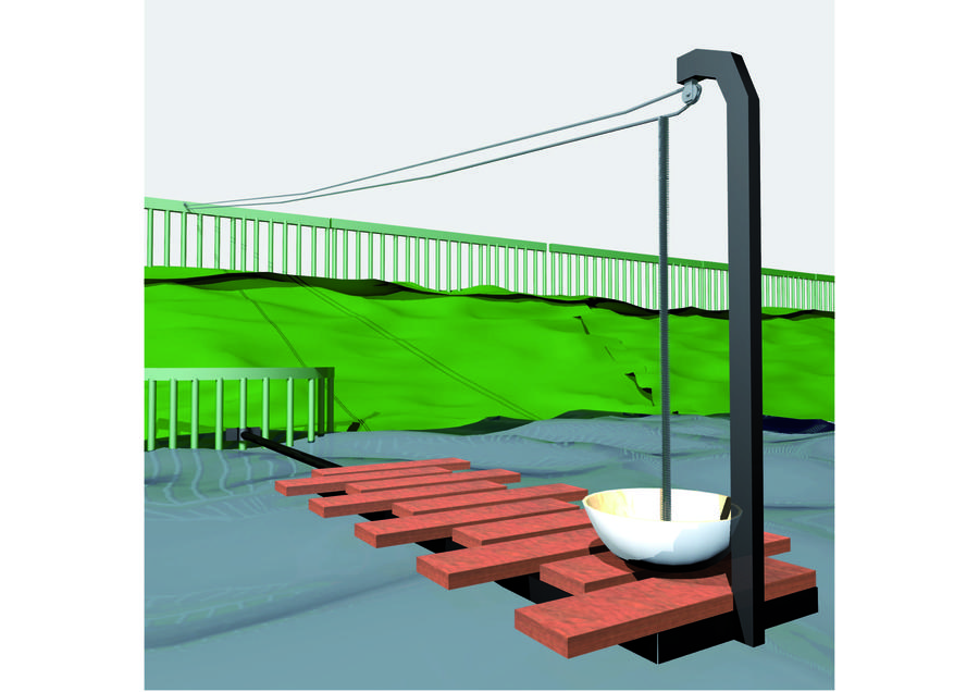 Celá plošina je ukotvena pomocí podpůrné tyče, která je upevněna na odtokové mříži jezírka Marion.