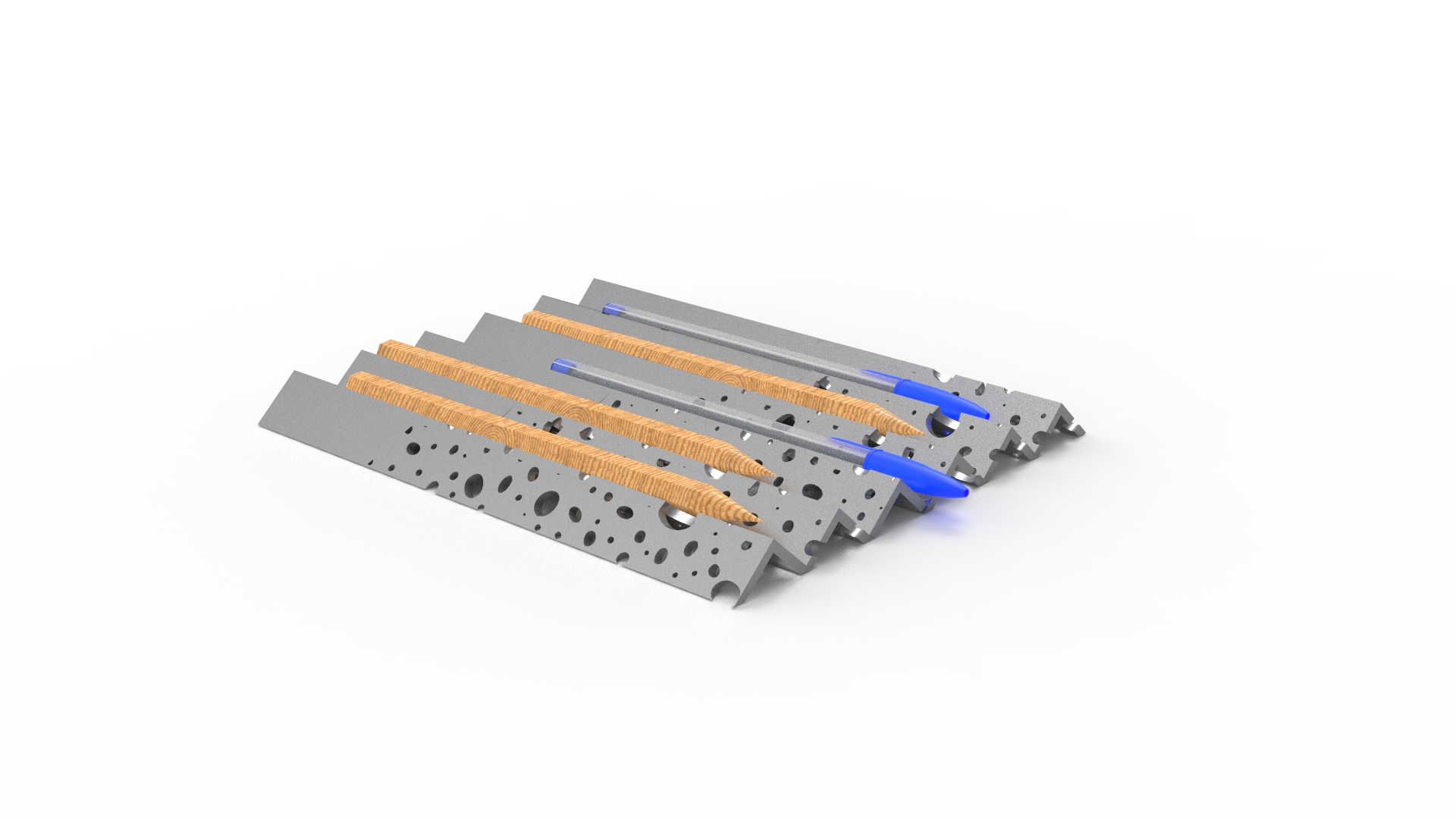 Inspirací pro mé řešení kancelářského setu byla výseč sýru a to trojúhelníková geometrie, plocha a nesymetrické otvory.