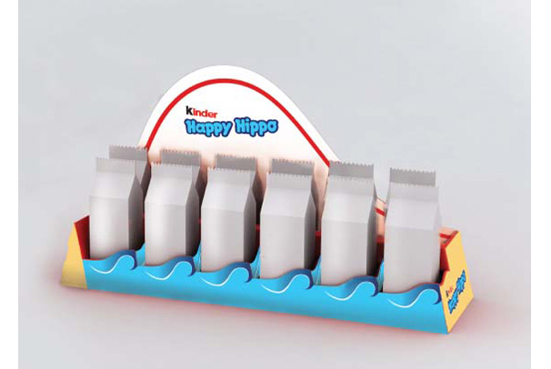 Pokladní pultový display pro produkt Kinder Happy Hippo.