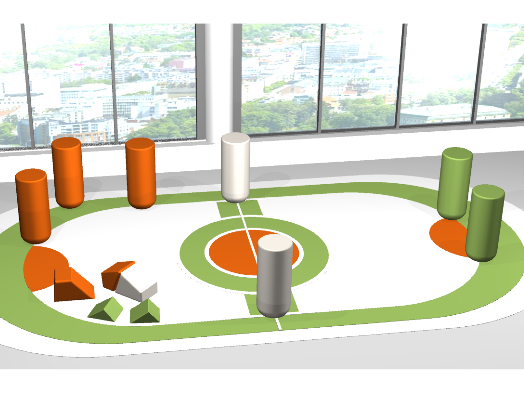 Součástí návrhu je i hrací pole. Stejně jako u mobiliáře vychází z malých částí po velké celky.
