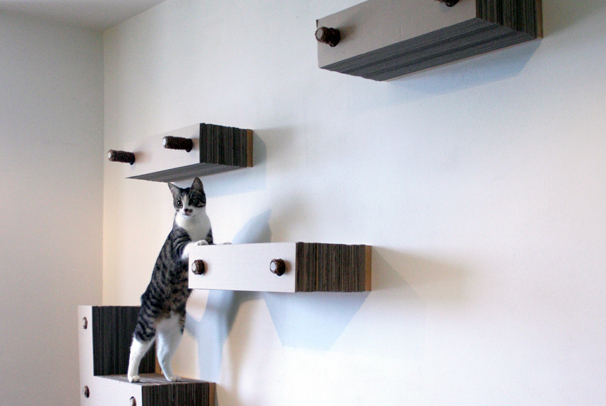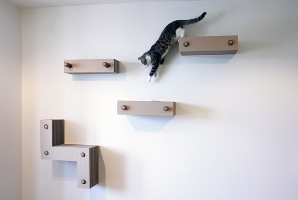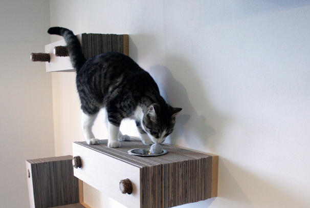 Návrh sady pro vytvoření speciálního stromu pro kočky. Variabilní systém a přírodní materiál vystihuje celou sadu.