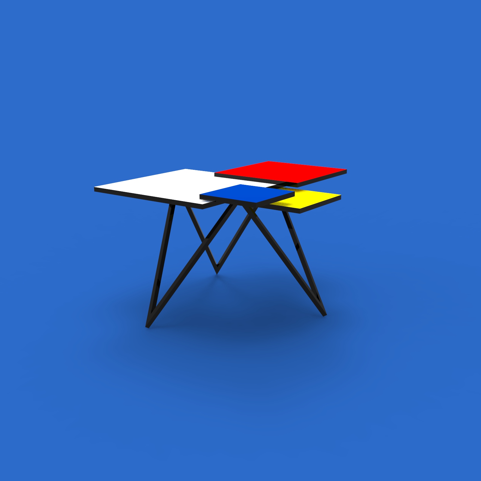 Nábytek o třech podpůrných bodech. Geometrický stolek inspirován kompozicemi Pieta Mondriana.