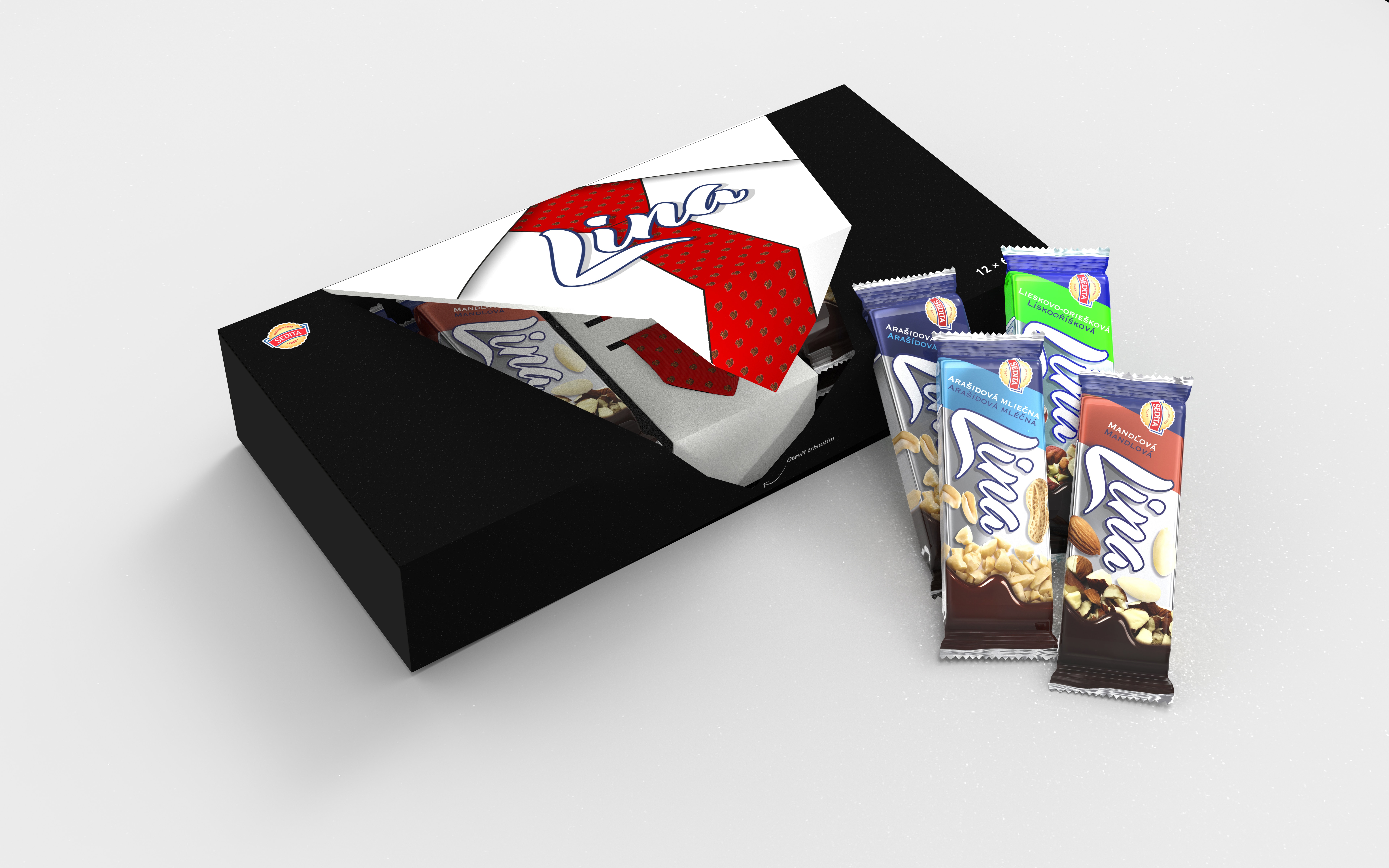 Balení oplatek Lina s jedinečným překvapením v podobě série stylizovaných kravat.