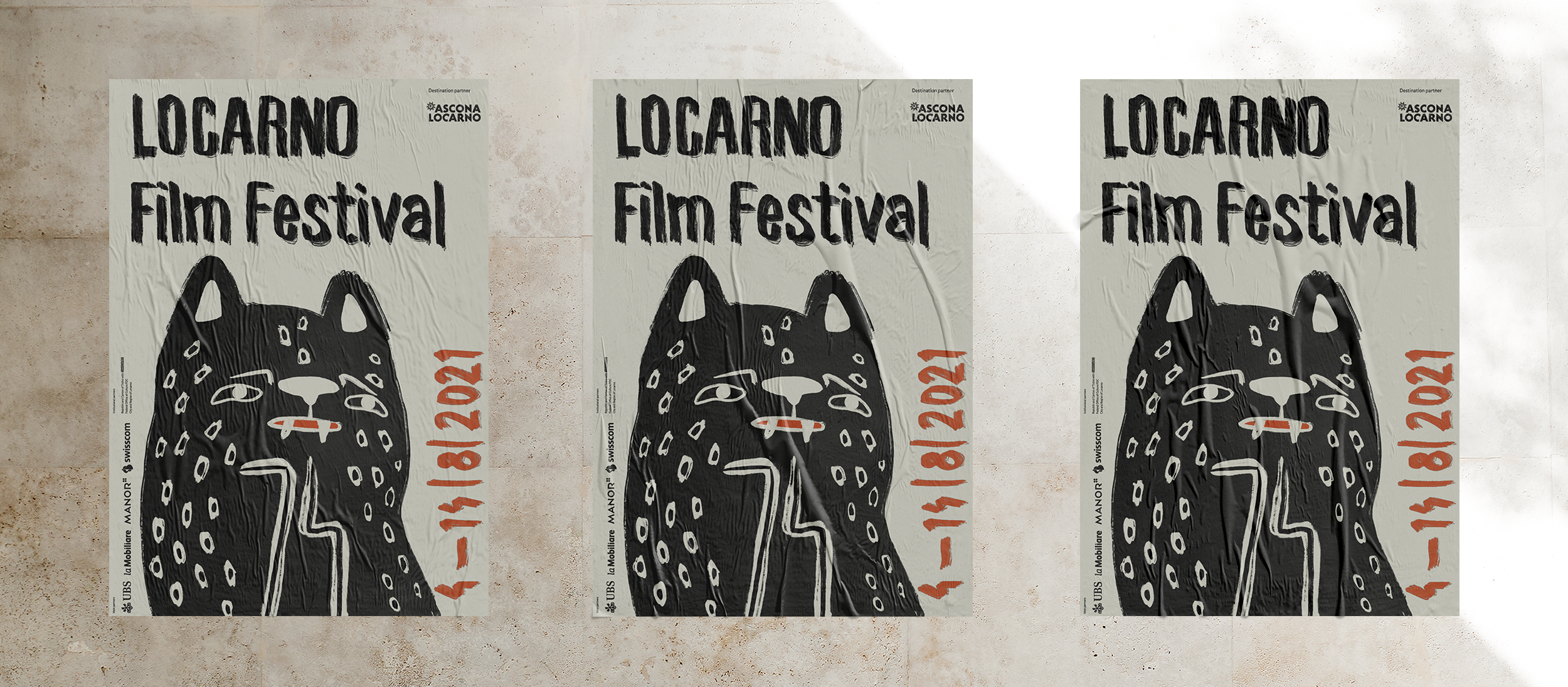 Locarno je filmový festival, známý kvůli ceně zlatého leoparda, který je součástí vizuálu každý rok. Ve svém designu jsem se inspirovala v plakátech z minulých let. Hlavním motivem je leopard, který je doprovázený ručně napsaným textem.