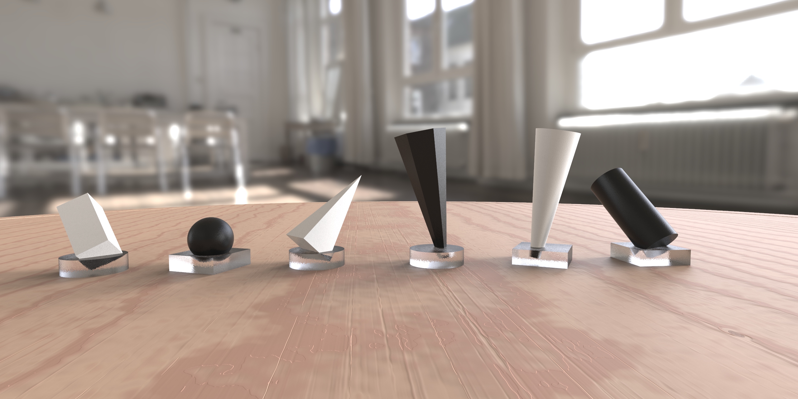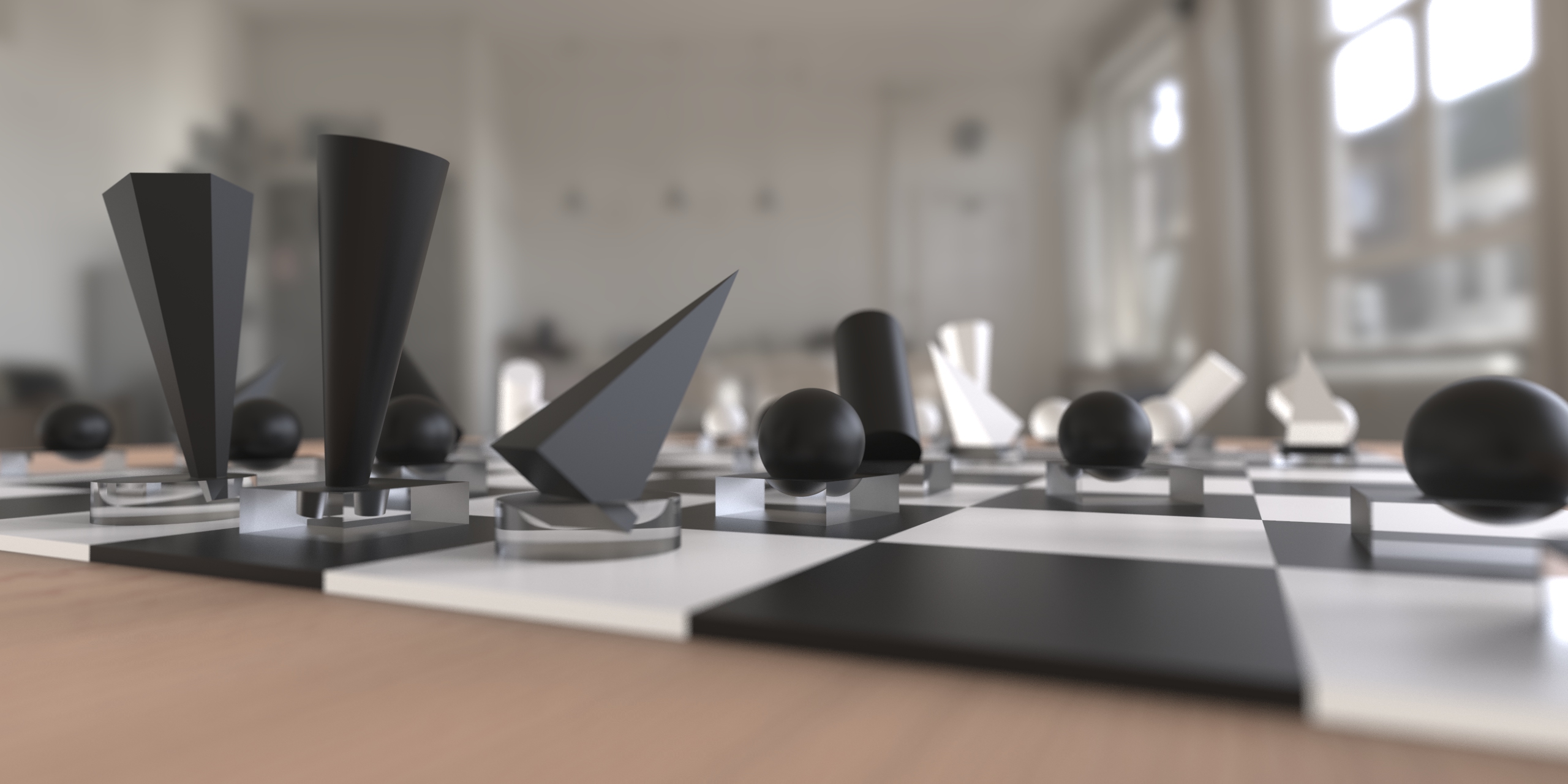Geometrické řešení šachových figurek, využívající tvarového a materiálového kontrastu jako svých vedoucích estetických prvků. Vedoucí myšlenkou samotného designu je sblížení věkových skupin v rámci volnočasových aktivit za pomocí kombinace svěží formy a obecně známé hry.