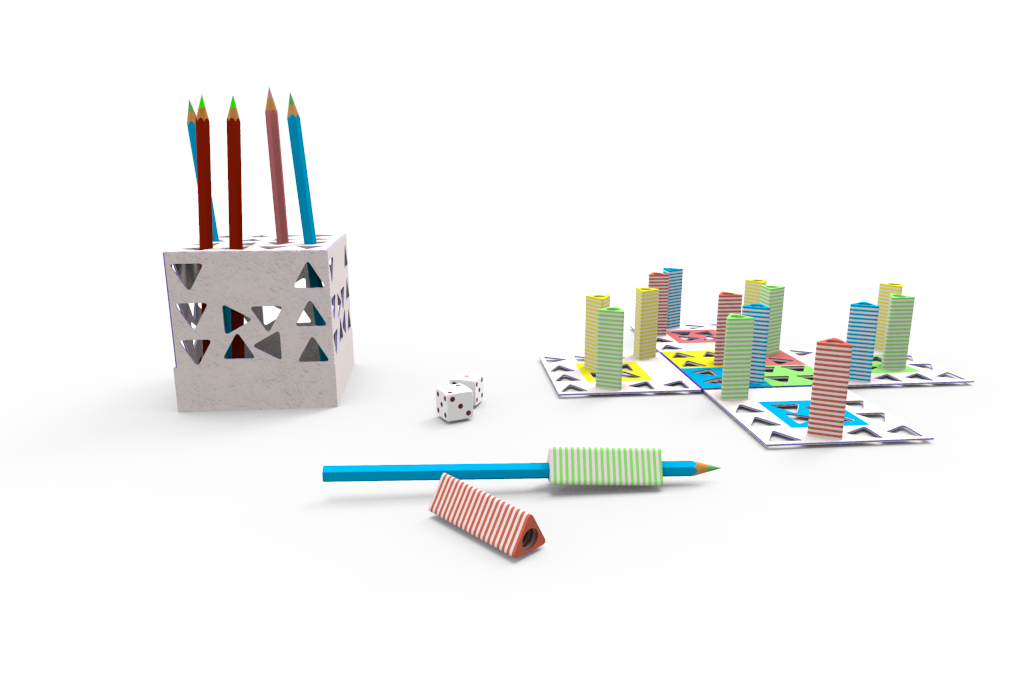 Obal na pastelky a pomůcky pro správné držení tužky, se kterým si můžete nejen kreslit, ale i hrát člověče nezlob se.