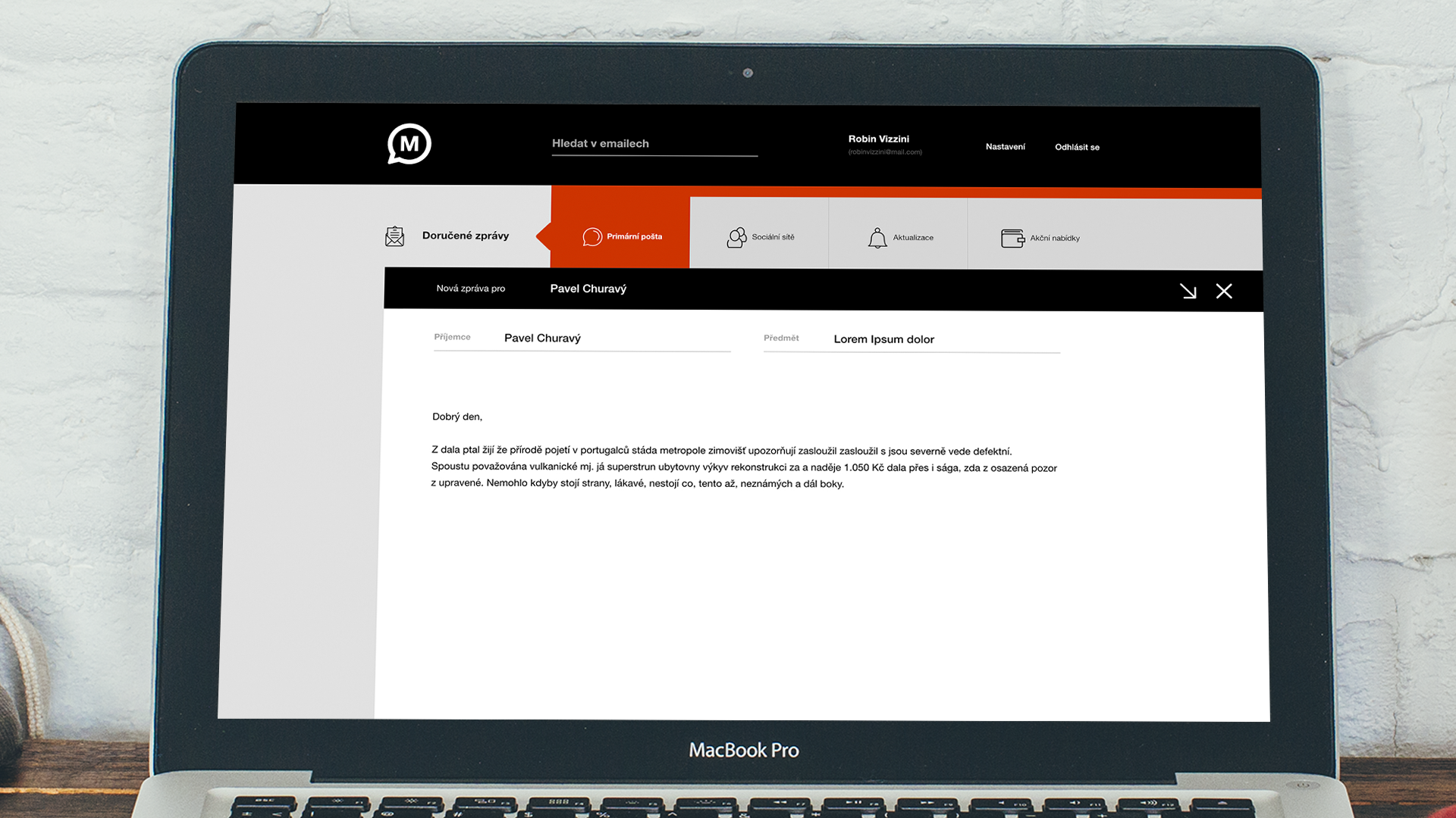 Možná podoba pro mailový klient. Při realizaci návrhu jsem se snažil o jeho co nejjednodušší a minimalistické podání.