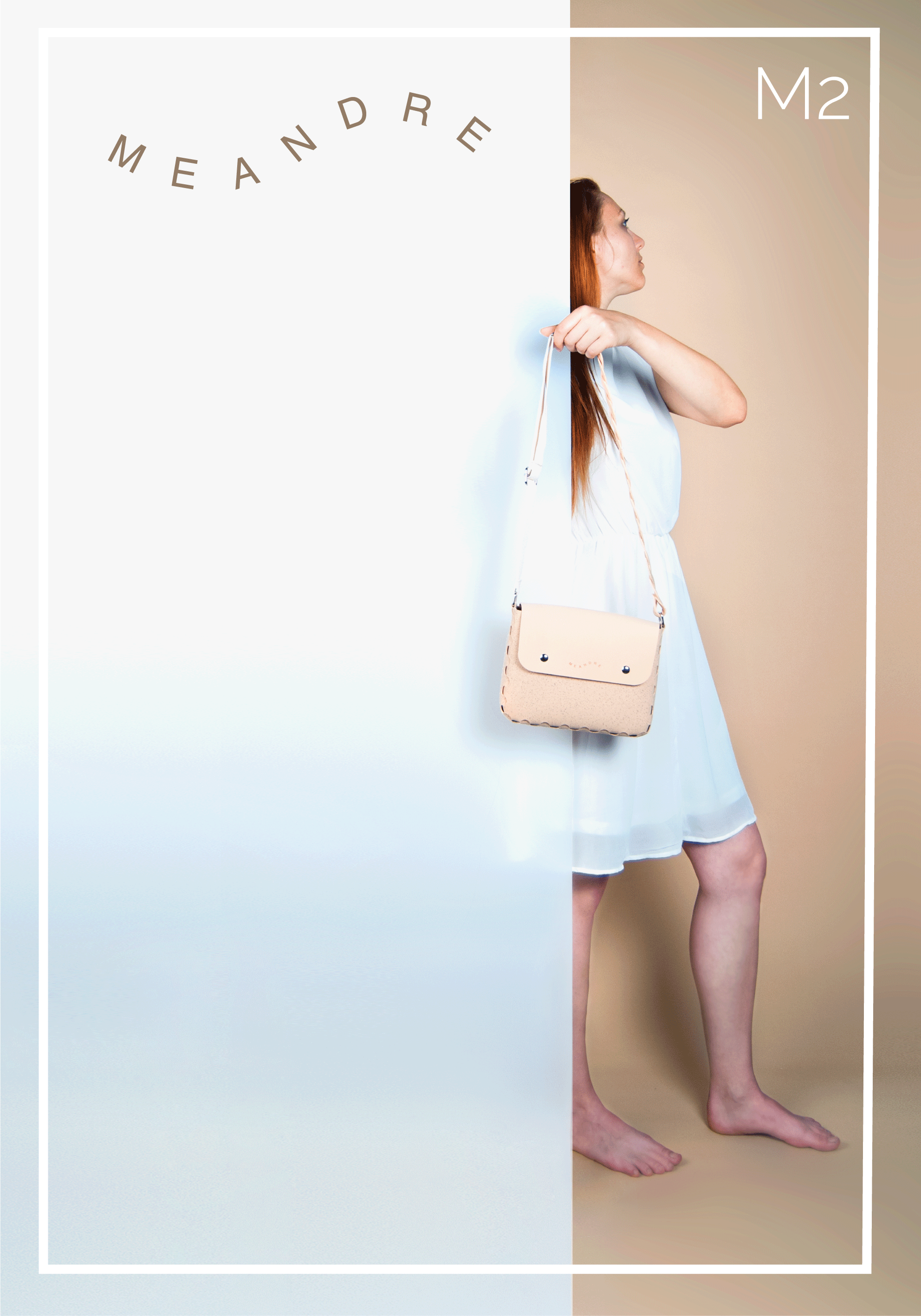Celý koncept kabelek Meandre klade nároky na kvalitní designové zpracování, které podpoří praktické používání. Stejně dbá na profesionální, ale jednoduché sestavení. To umožňuje zámkový systém, který vytváří jemnou, ale esteticky zajímavou linku na hraně kabelky.