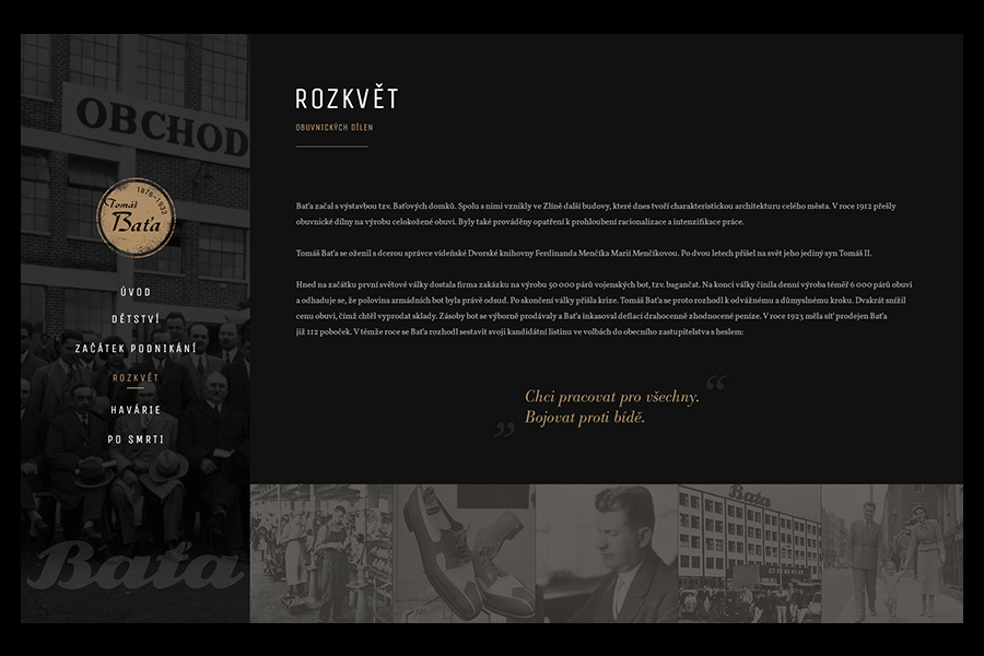 Microsite o československém podnikateli a krále obuvi Tomáši Baťovi.