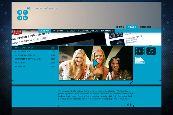 Návrh produktové microsite je založen na prodeji služeb, které toto kreativní televizní studio nabízí. Mezi ně mimo jiné řadí živé přenosy, videozáznamy, propagační videa, možnost pronajatí studia s technikou a další práce spojené s televizním prostředím.