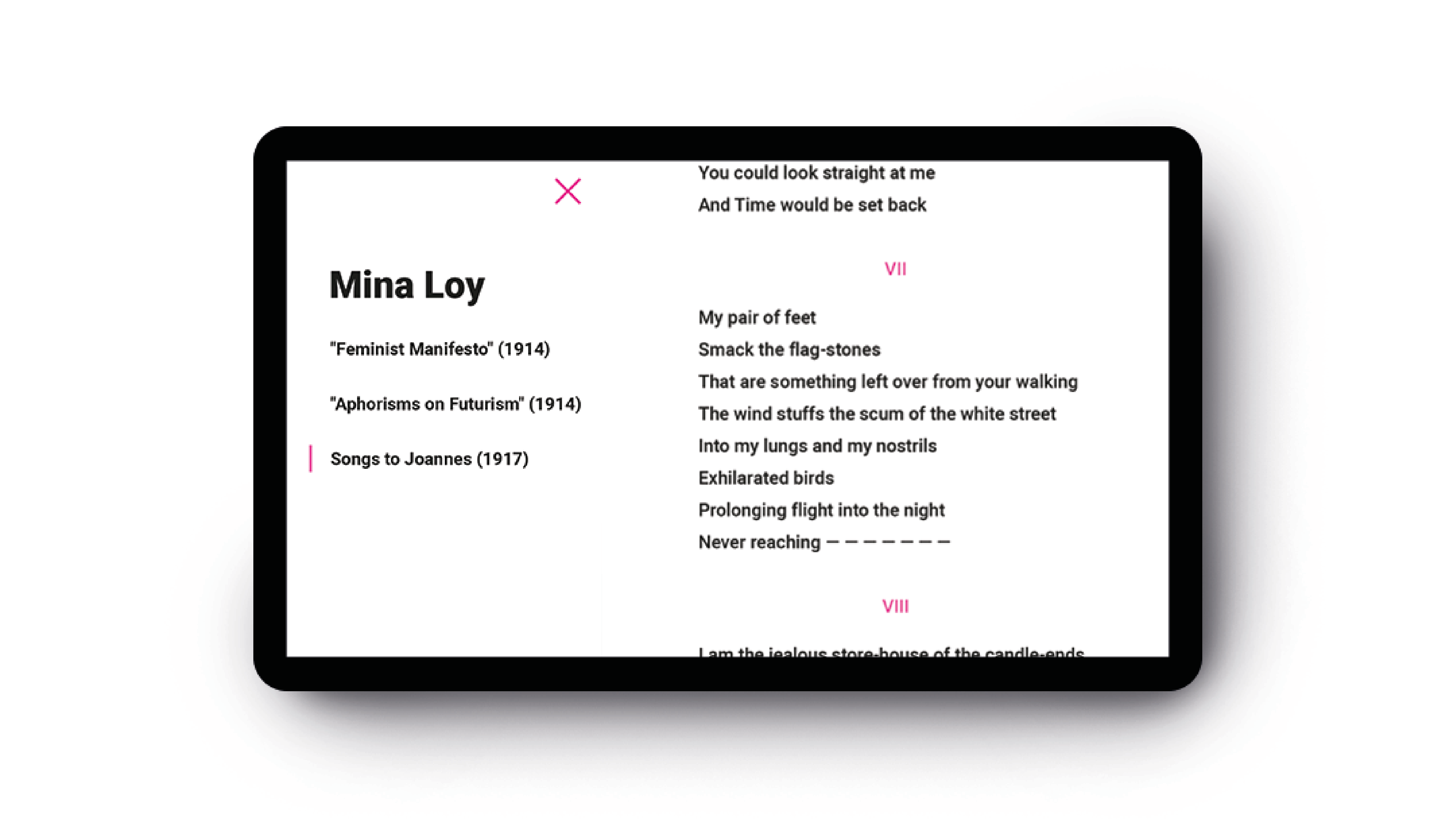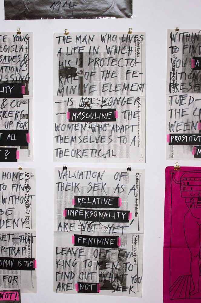 Webová stránke o poetke a feministke Mine Loy. Zamerala som sa na jej najvýznamejšie dielo Feminist Manifesto, ktorého prvé verše som prepísala na noviny a papier, čím som chcela poukázať na to, že aj v dnešnej modernej dobe je táto téma veľmi aktuálna a ľudia by si ju mali viac všímať. Vytvorením plagátov si tak ľudia viac všimnú text, ktorý je stále tak aktuálny napriek tomu že bol vytvorený pred vyše jedným storočím. // EN: Webpage about feminist, british artist, writer, poet, playwright, novelist, designer of lamps and bohemian, Mina Loy. My main target is Feminist Manifesto which First verses I hand wrote on paper as a reaction od feminist theme what is topical these days as well as it was more than century ago.