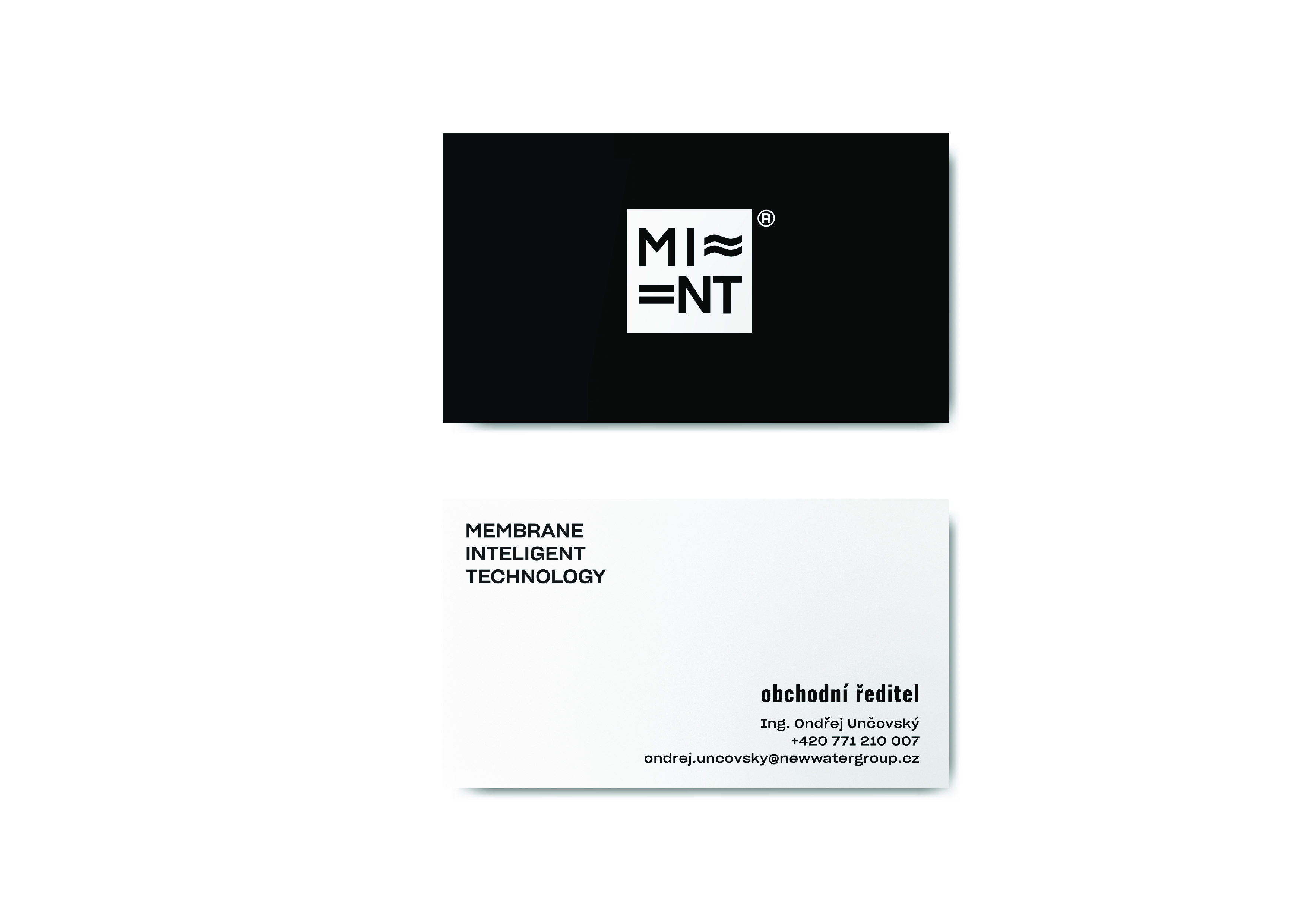 MINT– je český, inžiniersko-technologický start-up ktorý aplikuje inteligentné membránové technológie pre zaistenie kvality vody, zdravia a ochranu životného prostredia. Našou úlohou bolo vytvoriť logo ktoré by mohli používať na označovanie svojich produktov čož sú veľké filtračné jednotky ktoré čistia vodu. Logo ktoré som nevrhla je poskladané z jednotlivých prvkov, ktoré súvisia s filtráciou vody. Obdĺžnik v ktorom je logotyp zasadený ma symbolizovať filter, zvlnene čiary majú symbolizovať čistú vodu a rovné čiary znečistenú vodu a hlavným prvkom je samotný názov MINT. Logo by sa mohlo používať aj s prídavným celým názvom Membráne Inteligent Technology ale aj samostatne. V ukážkach je samostatné logo doplnené aj o názvy ako e-book, e-care a IQ, ktoré start-up už používa pri prezentácii portfólia služieb. Ďalej sú tam použité ukážky kde je logo aplikované napr. na vizitke obchodného riaditeľa, veste pracovníka z montáže či na kontajnery v ktorom sú tieto filtračné jednotky distribuované.