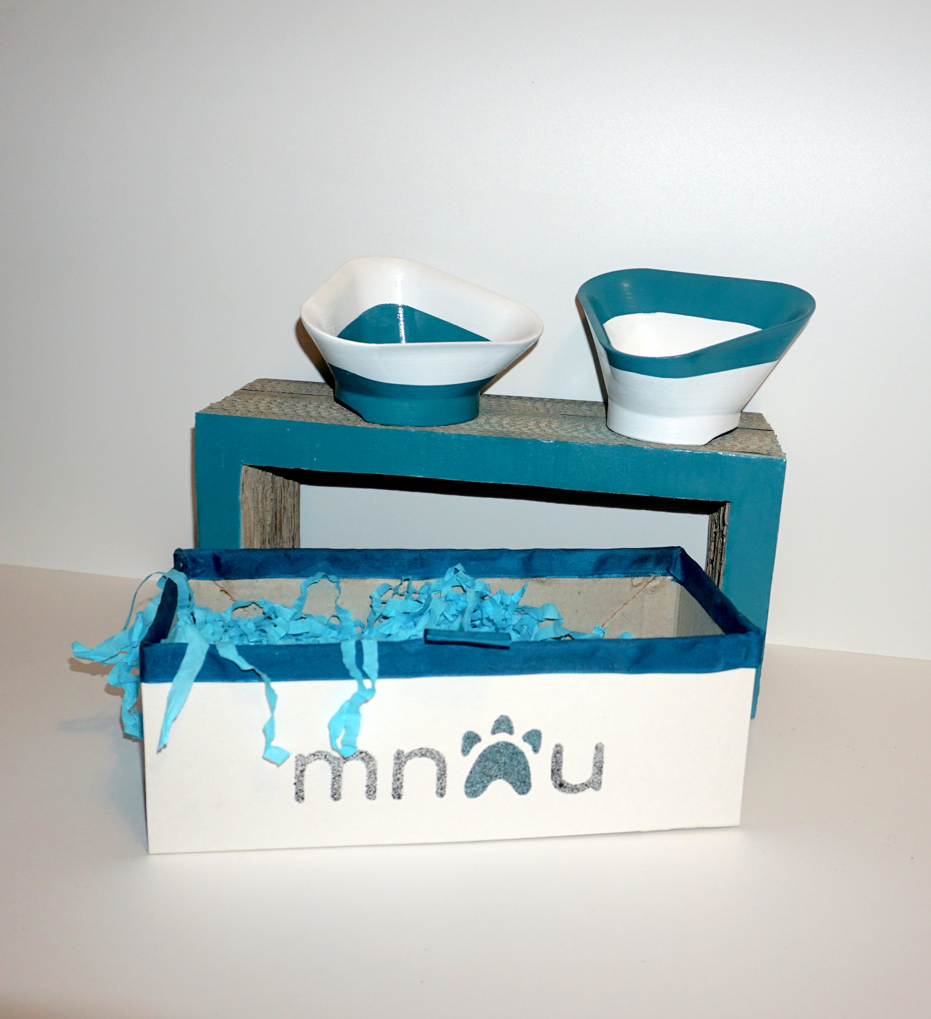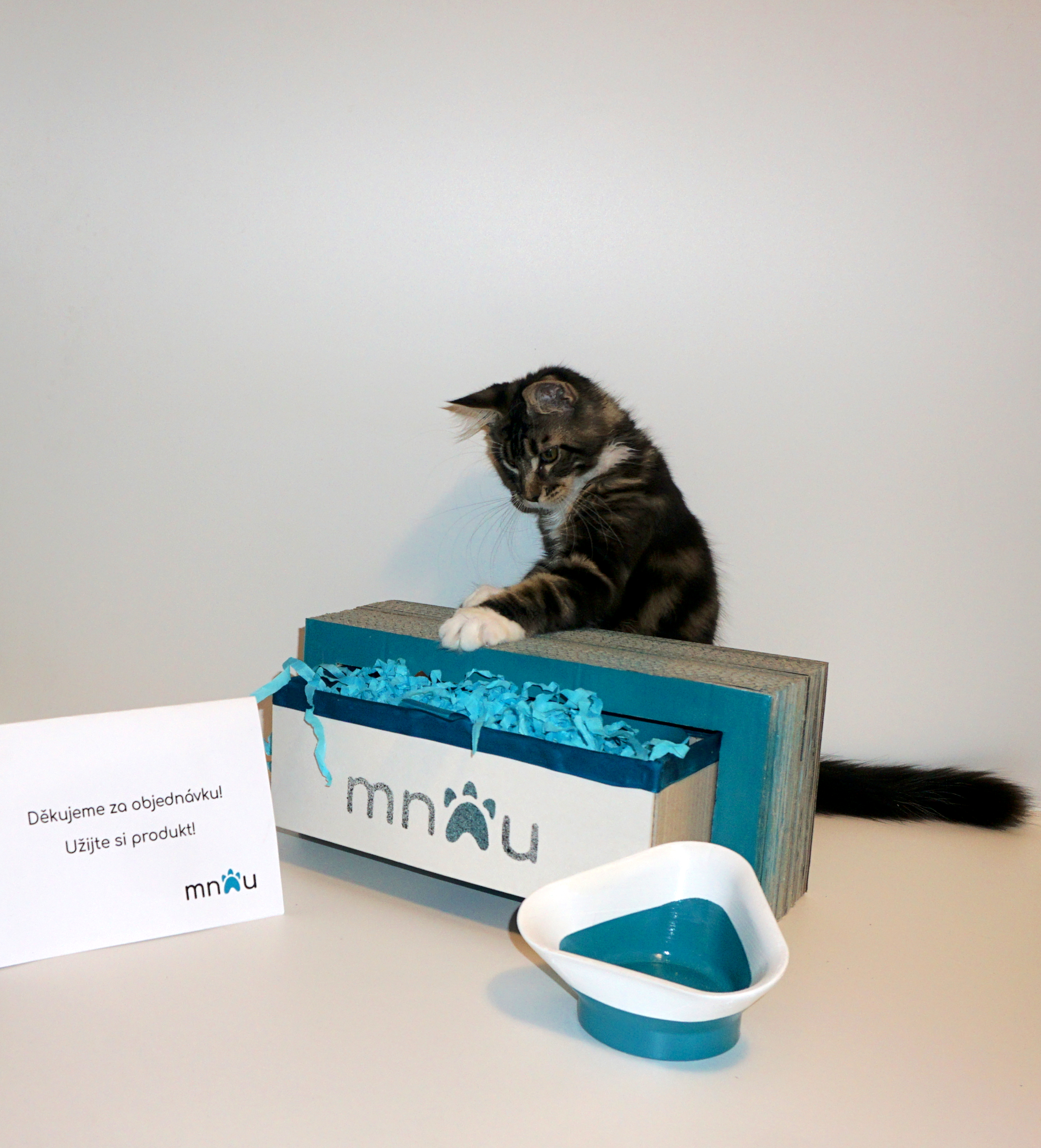 MNAU kočičí misky vytvořeny v závislosti na tvaru kočičí hlavy, tak aby kočky jakéhokoli vzrůstu měly pohodlnou dostupnost ke konzumaci své potravy.