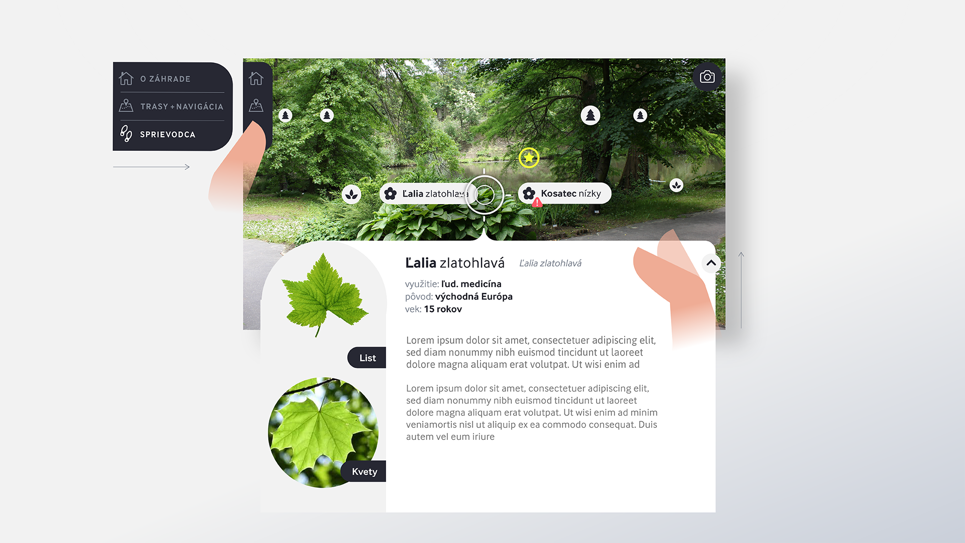 Mobilná aplikácia spája (v sebe) informačno-edukatívny obsah a novú technológiu AR, tj. rozšírenú realitu, v dokonalého spoločníka na potulkách Botanickou záhradou UK v Bratislave.