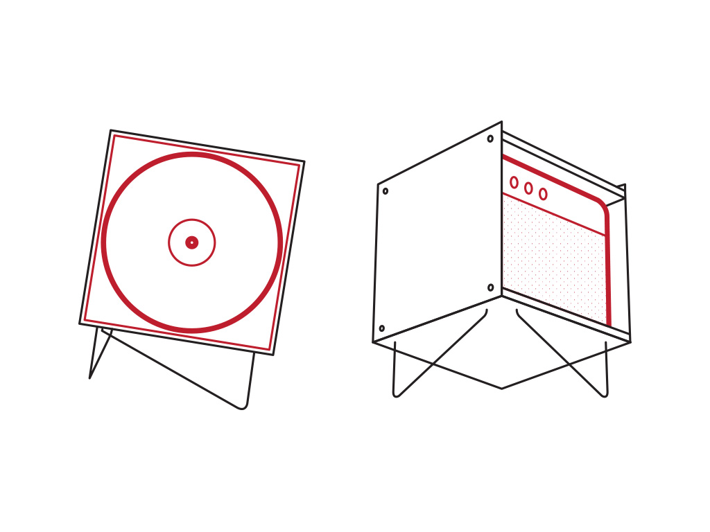 Kabinet pro ukládání LP desek, nebo pro malé kombo, které získá ideální pozici pro hraní.