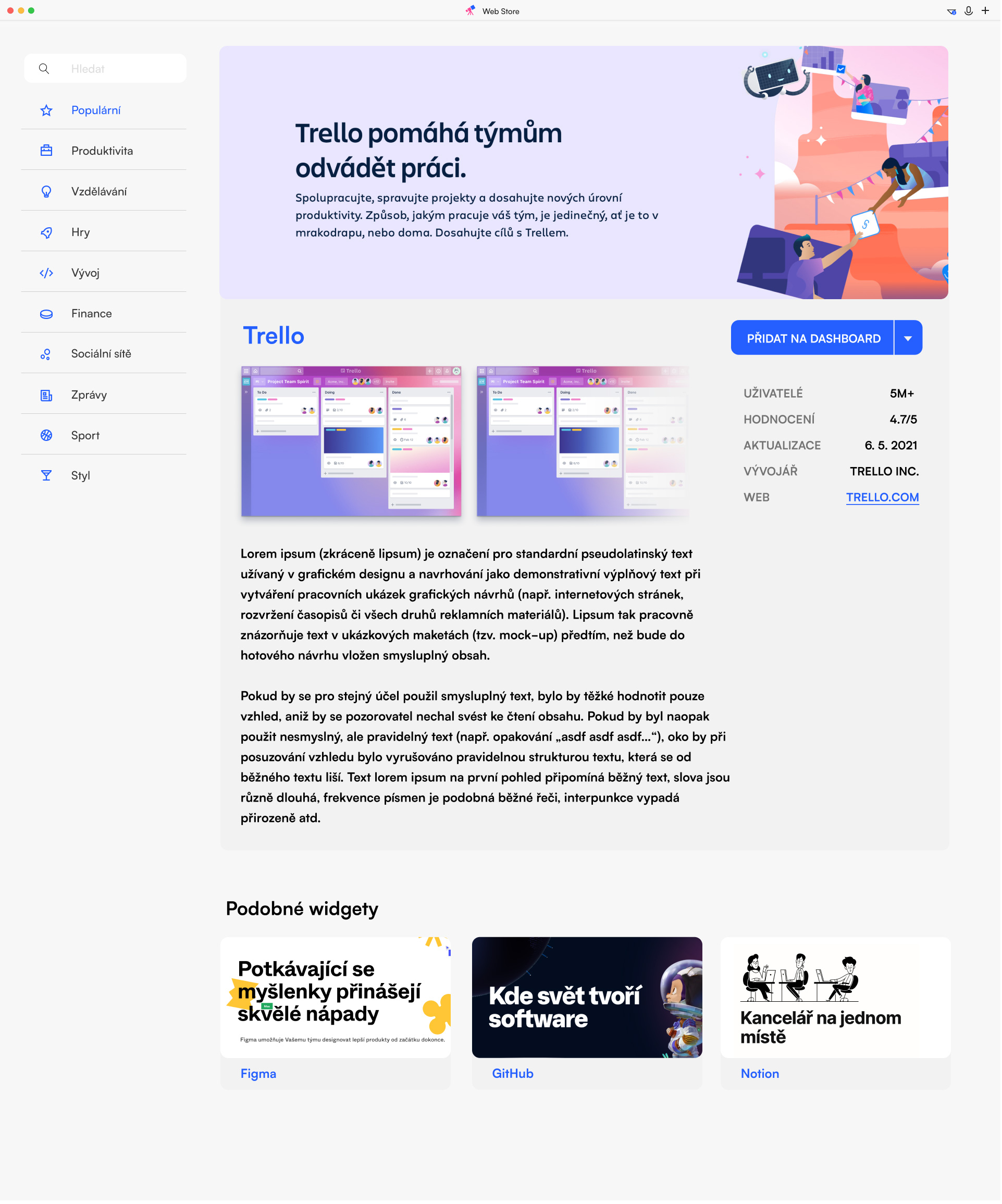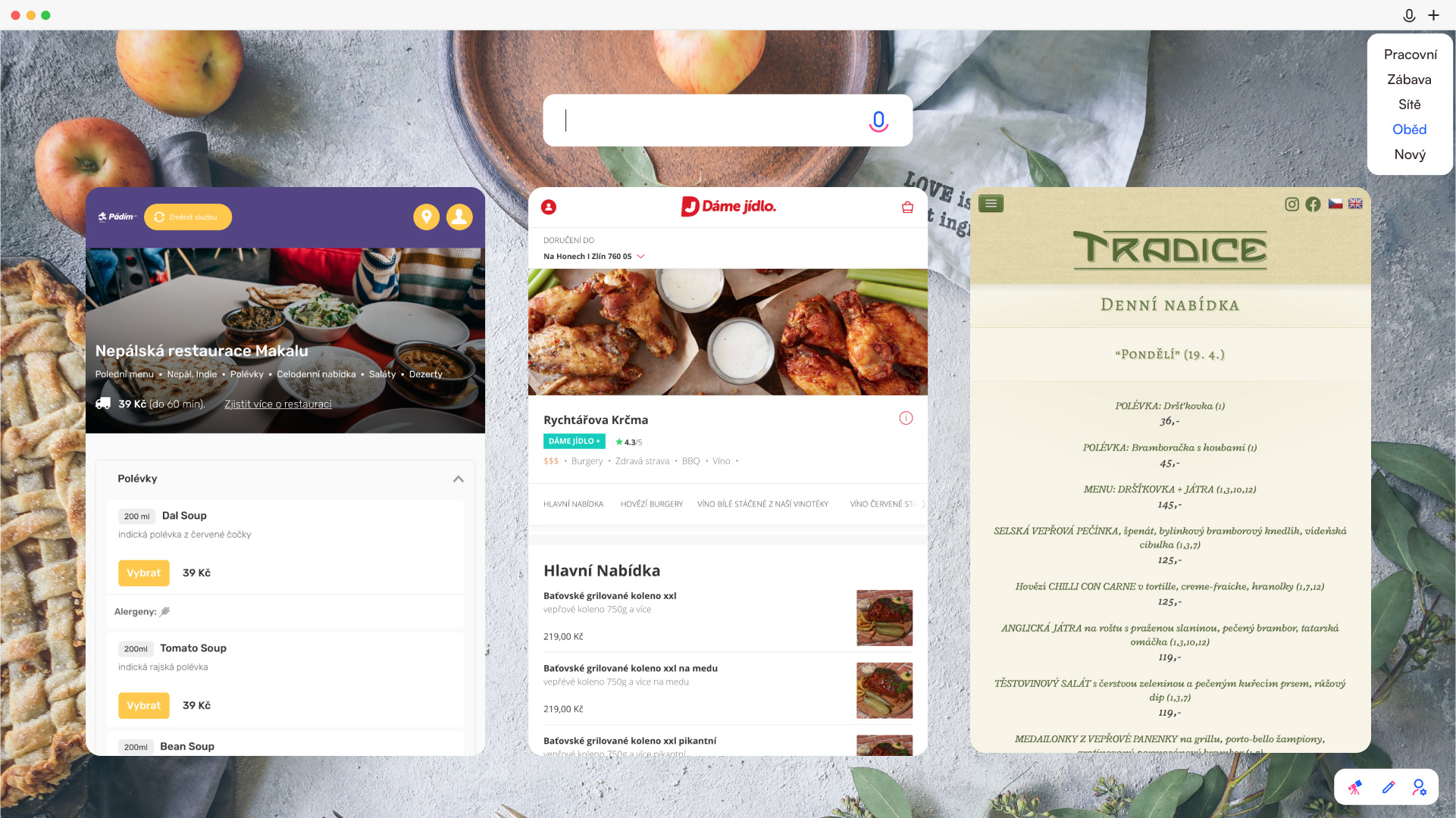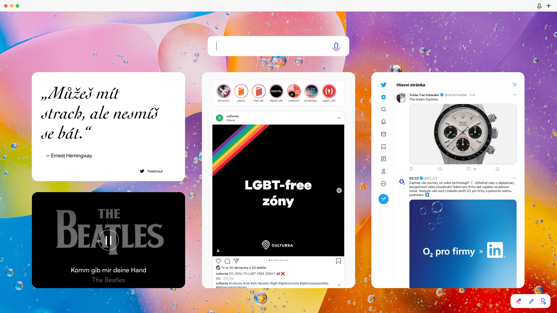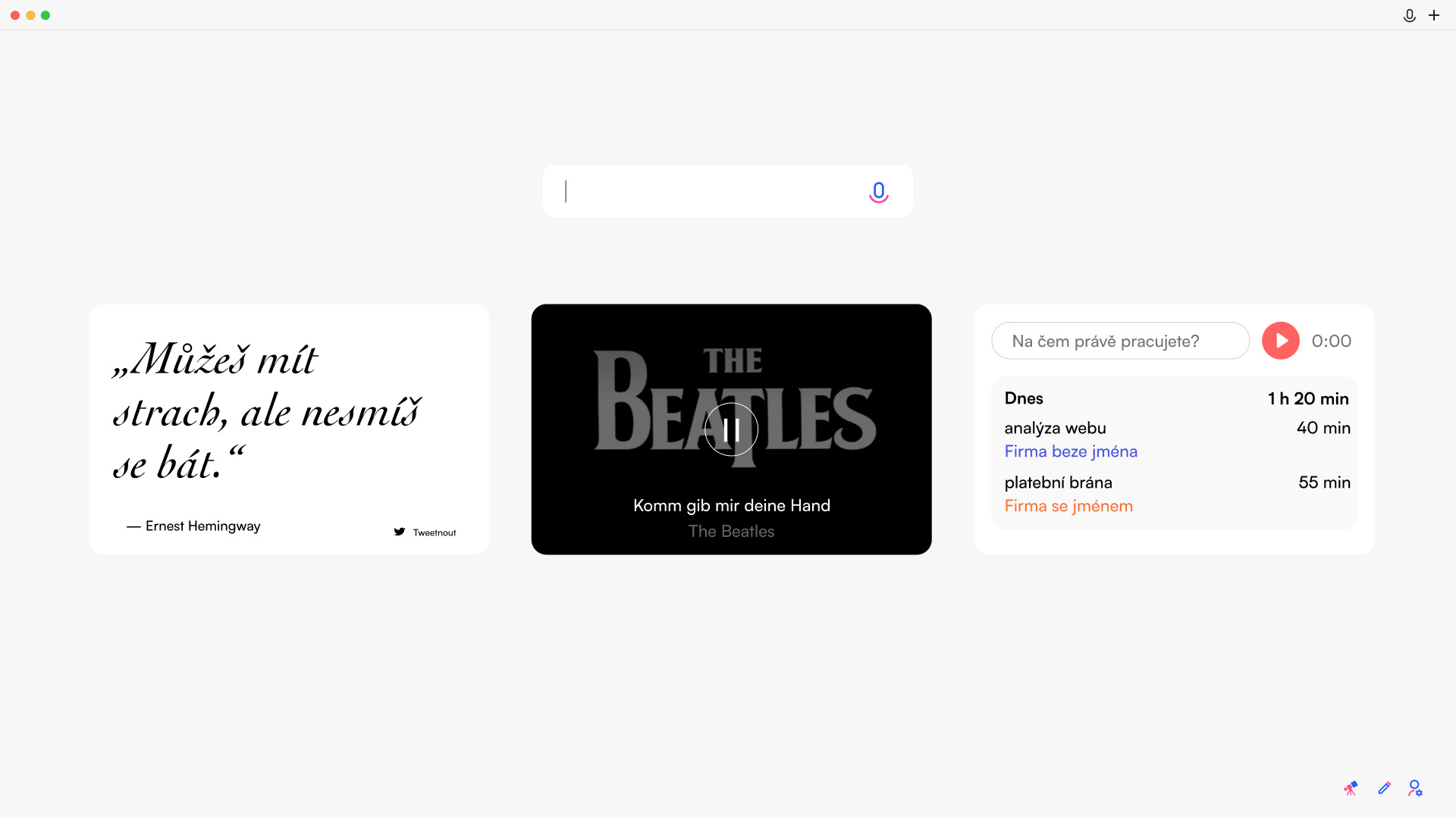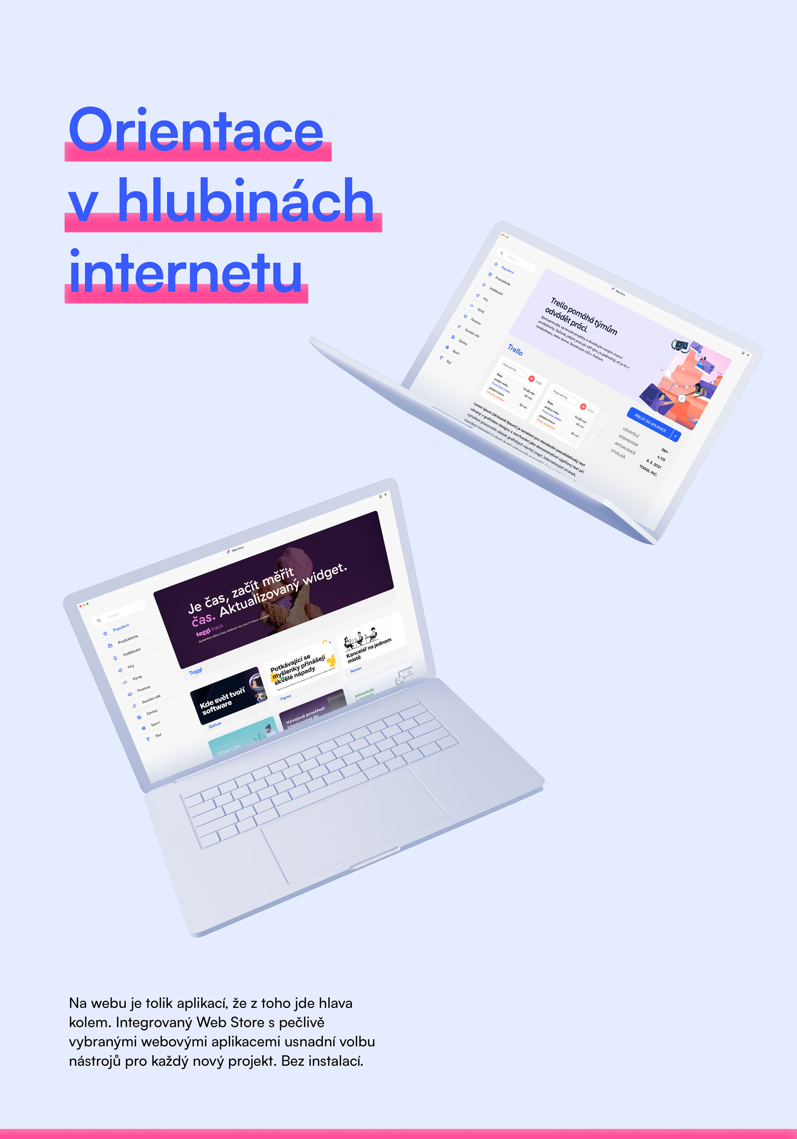 Koncept webového prohlížeče, který nabízí jednoduchý přístup k často používaným aplikacím, doporučí vhodné pracovní nástroje a je ovladatelný hlasem.