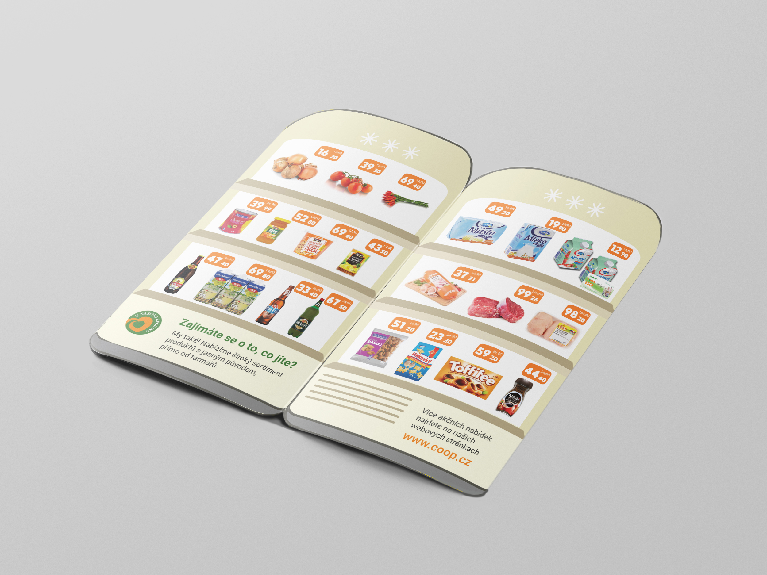 Na zadní stránce je QR kód, který při použití převede uživatele na web, kde je další informace o akčních nabídkách.