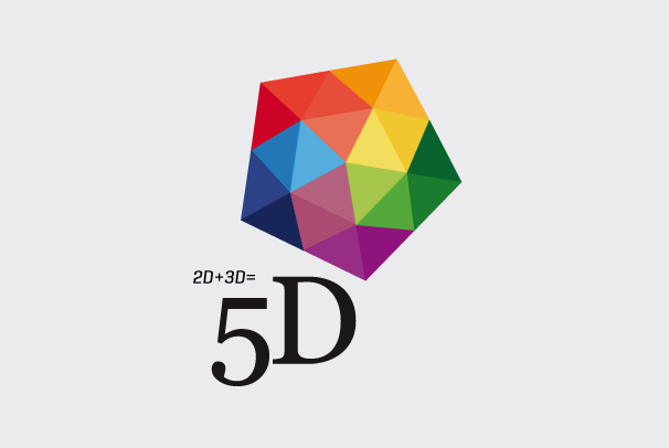 Pětiúhelník svou strukturou znázorňuje ateliéry 2D a 3D. Doplňuje jej slogan : 2D+3D=5D