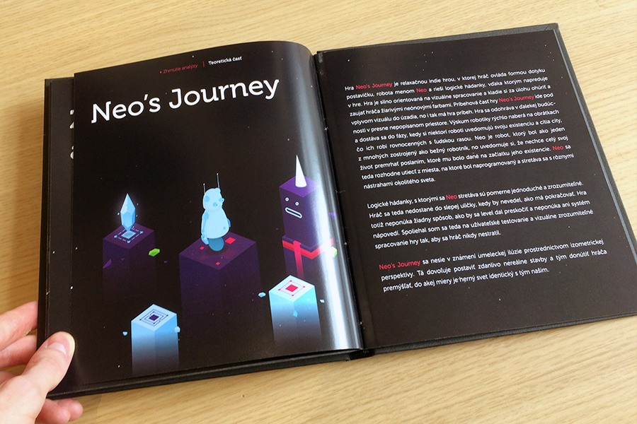 Hra Neo’s Journey je relaxačnou indie hrou, v ktorej hráč ovláda formou dotyku postavičku, robota menom Neo a rieši logické hádanky, vďaka ktorým napreduje v hre. Hra je silno orientovaná na vizuálne spracovanie a kladie si za úlohu ohúriť a zaujať hráča žiarivými neónovými farbami. Príbehová časť hry Neo’s Journey ide pod vplyvom vizuálu do úzadia, no i tak má hra príbeh. Hra sa odohráva v ďalekej budúcnosti v presne nepopísanom priestore. Výskum robotiky rýchlo naberá na obrátkach a dostáva sa do fázy, kedy si niektorí roboti uvedomujú svoju existenciu a cítia city, čo ich robí rovnocenných s ľudskou rasou. Neo je robot, ktorý bol ako jeden z mnohých zostrojený ako bežný robotník, no uvedomuje si, že nechce celý svoj život premrhať poslaním, ktoré mu bolo dané na začiatku jeho existencie. Neo sa teda rozhodne utiecť z miesta, na ktoré bol naprogramovaný a stretáva sa s rôznymi nástrahami okolitého sveta.