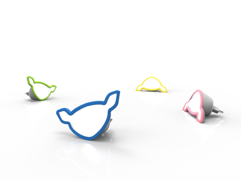 Zásuvkové noční osvětlení do dětského pokoje. Slouží jako orientační prvek ve tmě či jako „strážce“, který dává v noci pozor, když se dítě bojí tmy. Tvar vychází ze stylizovaných hlav a těl zvířat. Je velmi nekonkrétní z toho důvodu, aby si dítě samo vybralo, „kdo ho bude hlídat“ a rozvíjela se tak dětská fantazie. Hlavní část je vyrobena z plexi skla, které může být mléčné nebo s jakýmkoli motivem. Konstrukční část je vyrobena z plastu, aby se dítě nedostalo k elektronickým součástkám. Díky drážce v konstrukční části si dítě může se světlem libovolně otočit, bez potřeby vyndavat světlo ze zásuvky.