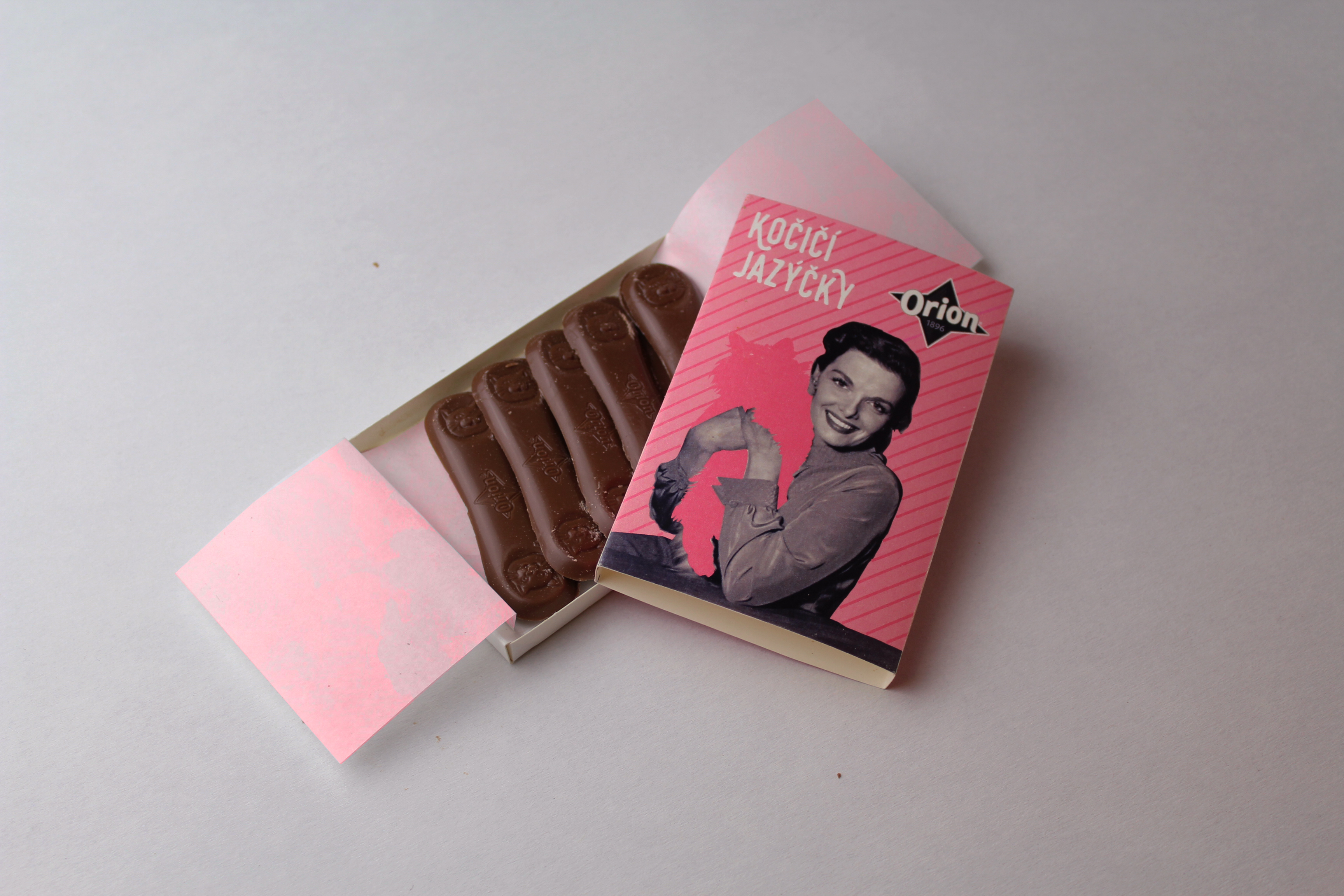 Redizajn obalu ,,Kočičí jazýčky,, pozostávajúci z 3 obalov, dva detské ktoré sa napájajú a jeden retro pôsobiaci obal pre dospelých.