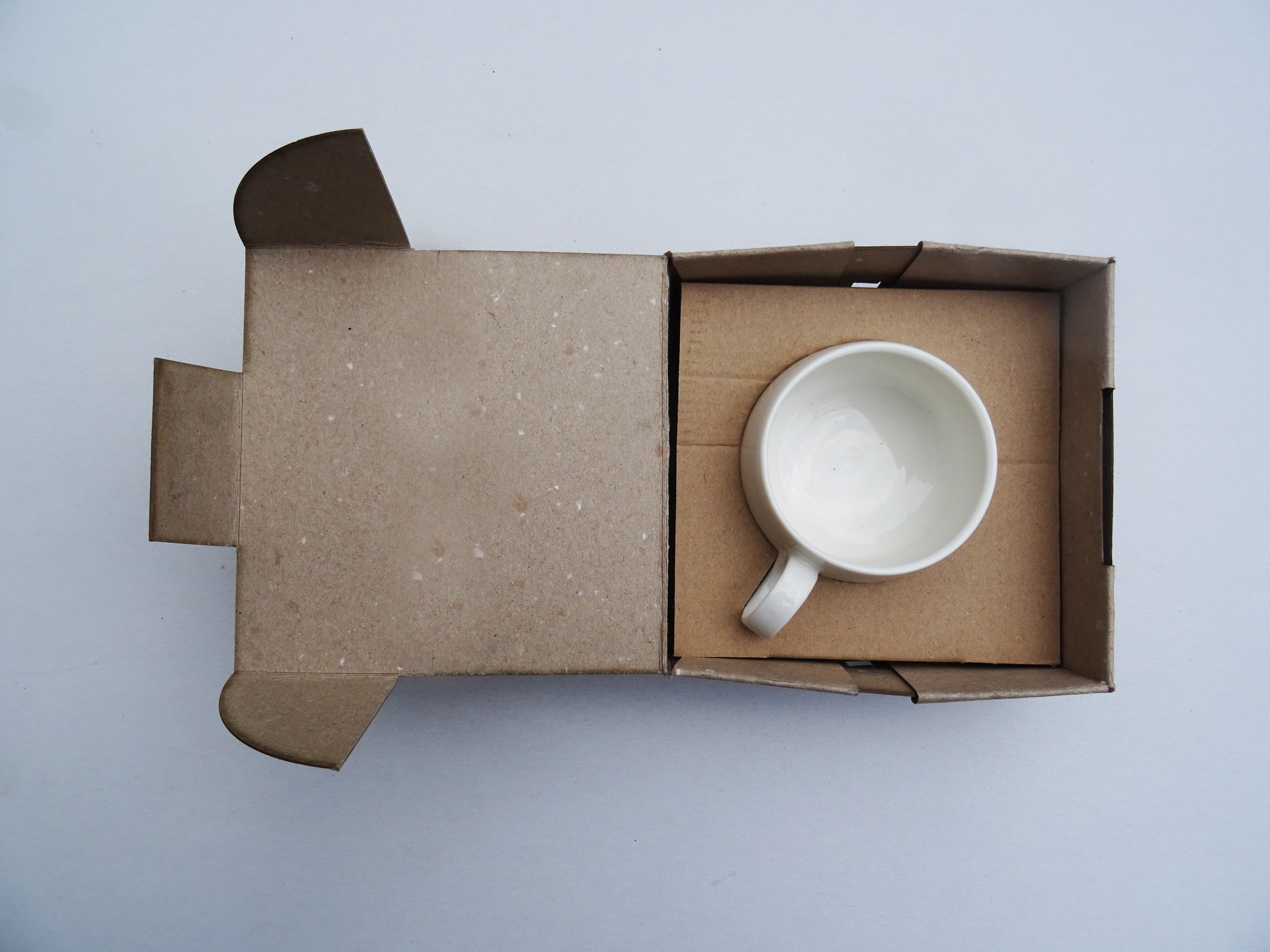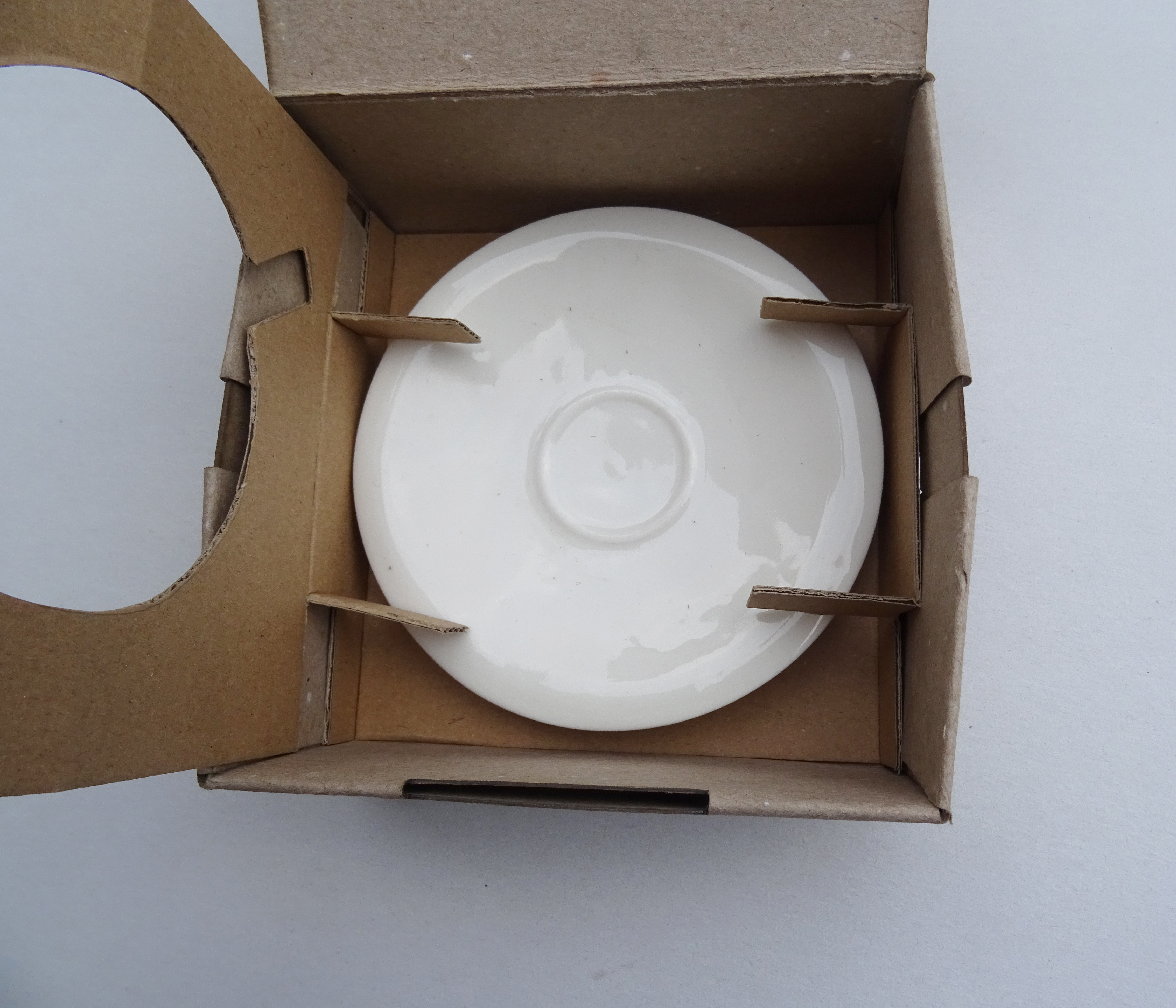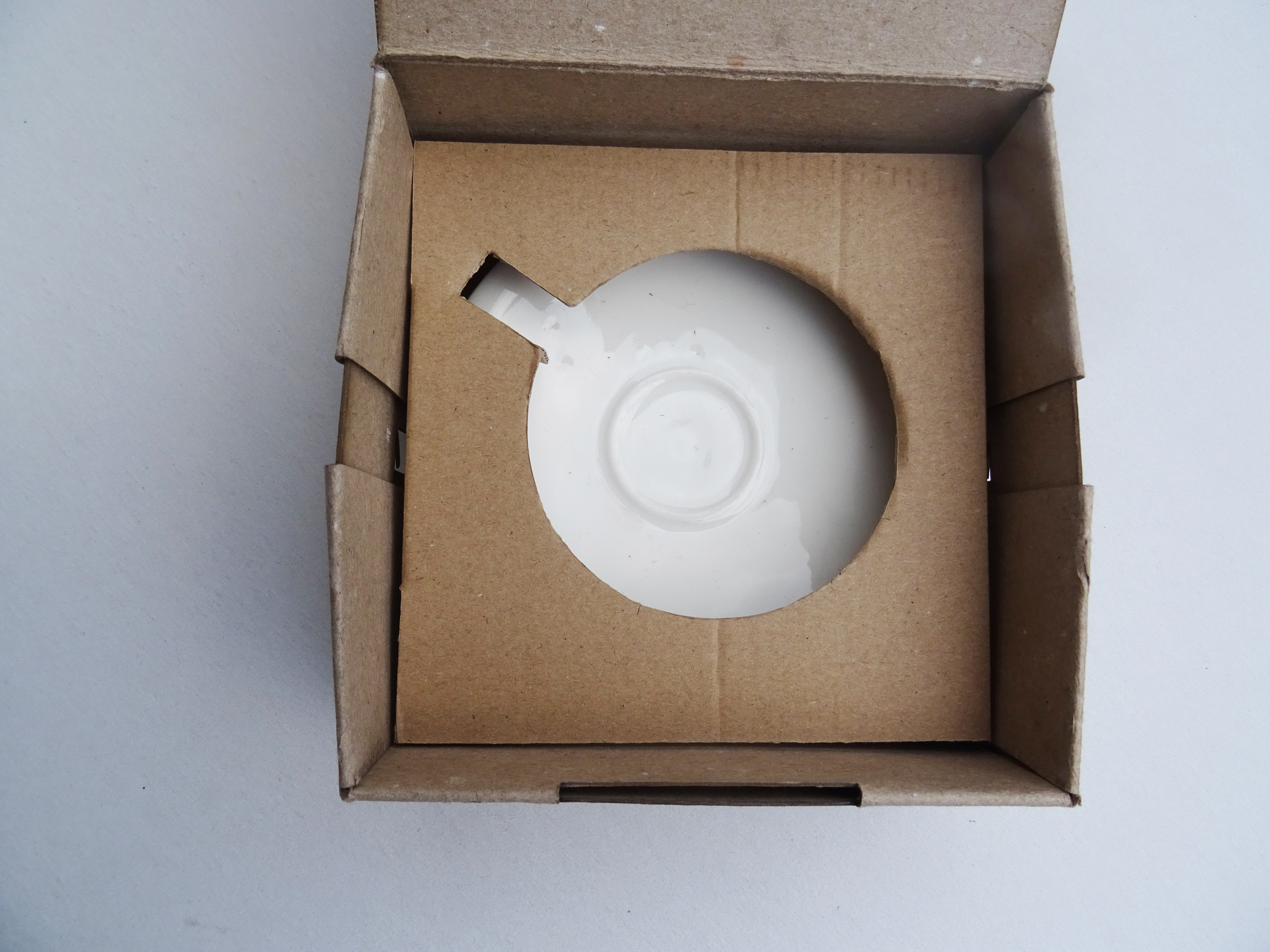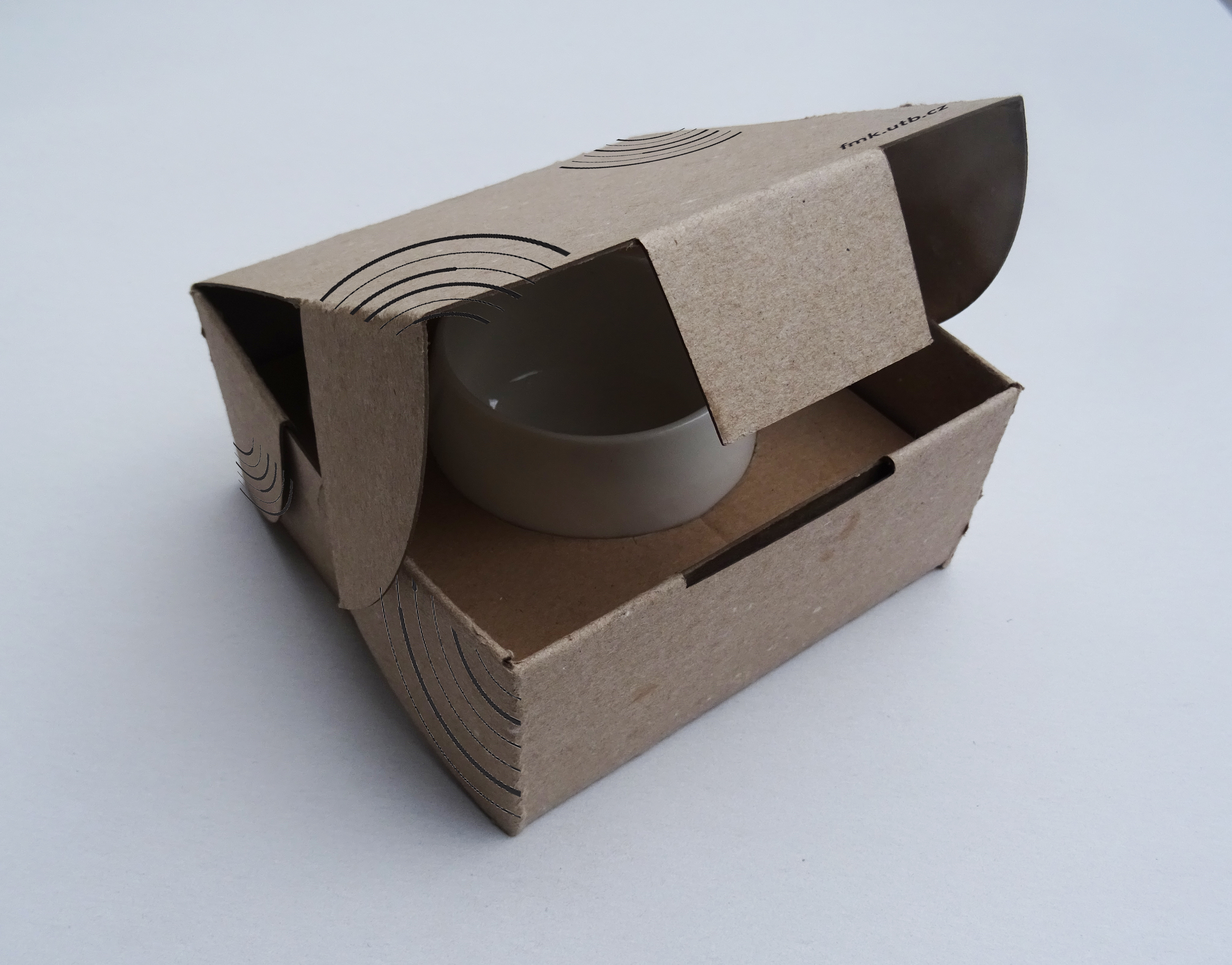 Návrh obalu pro porcelánový šálek s podšálkem od Lucie Trejtnarové, se skládá z jednoho kusu kartonu a mikrolepenky. Jednoduché a rychlé poskládání, které je bez lepení.