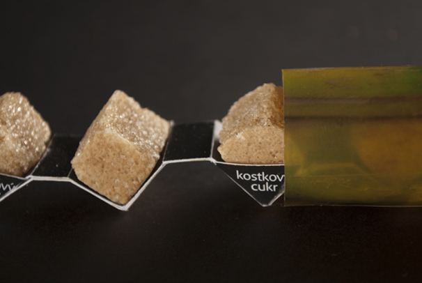 vytvořila jsem obal připomínající cukrovou třtinu, do kterého lze zasunout několik kostek třtinového cukru