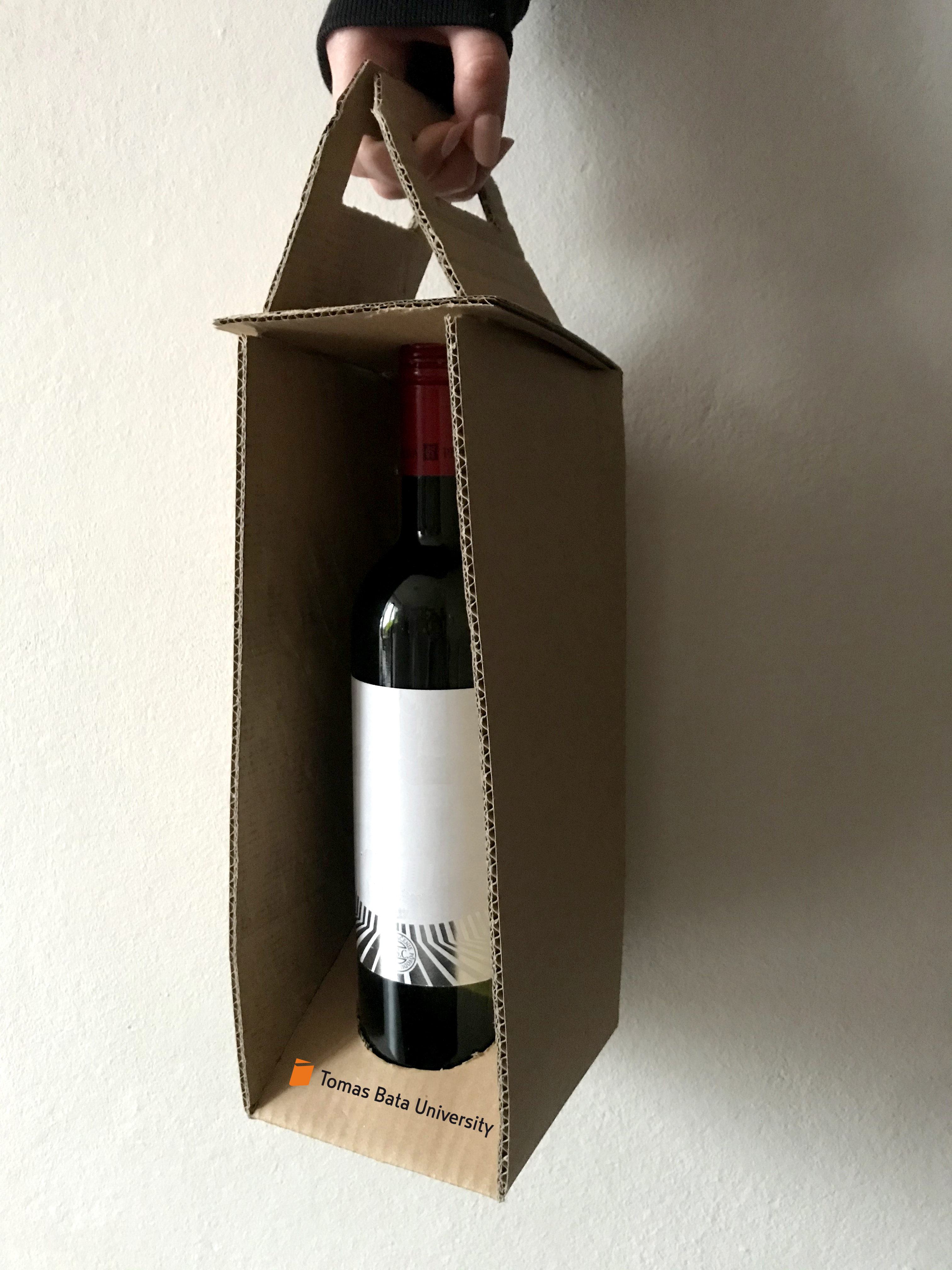 Obal je vytvorený z jedného kusu kartónu. Po zložení drží bez lepidla a fľaša je bezpečne zaistená.