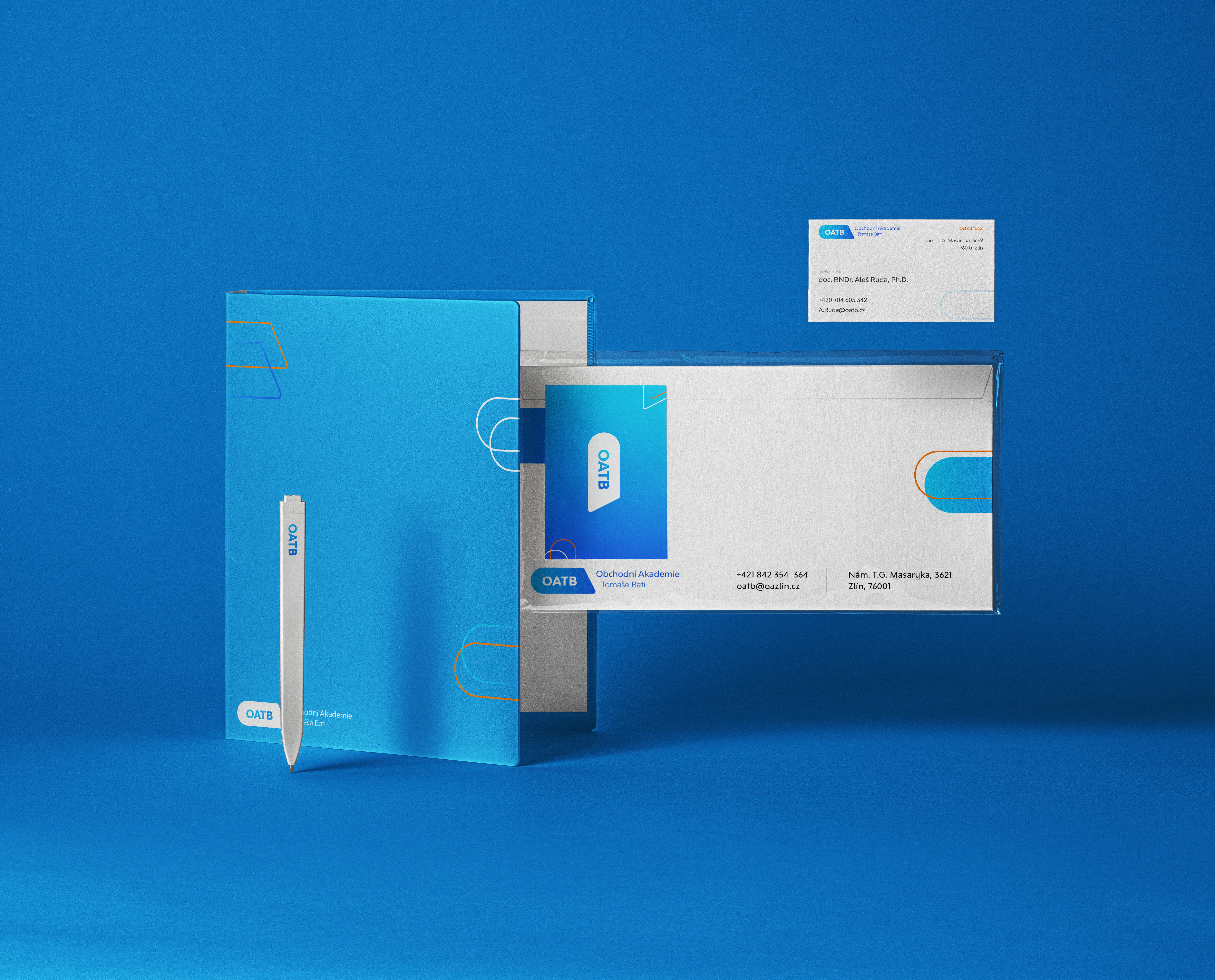 Návrh vizuálu OATB je čistý a moderný. Ústredný motív je značka, tvorená z tvaru plných písmen OA. Značka vytvára šípku a komunikačnú bublinu, čím odkazuje na rast a finančnícke schopnosti komunikácie. Farebnosť je postavená na gradiente modrých farieb, doplnených sýtou oranžovou. Samotná značka sa ďalej používa ako vizuálny prvok, formou masiek pre fotky alebo alebo grafických prvkov v outlineovej verzii. Web je postavený na 12 stĺpcovom gride a šablónach ktoré sa dajú prispôsobiť potrebám danej podstránky.