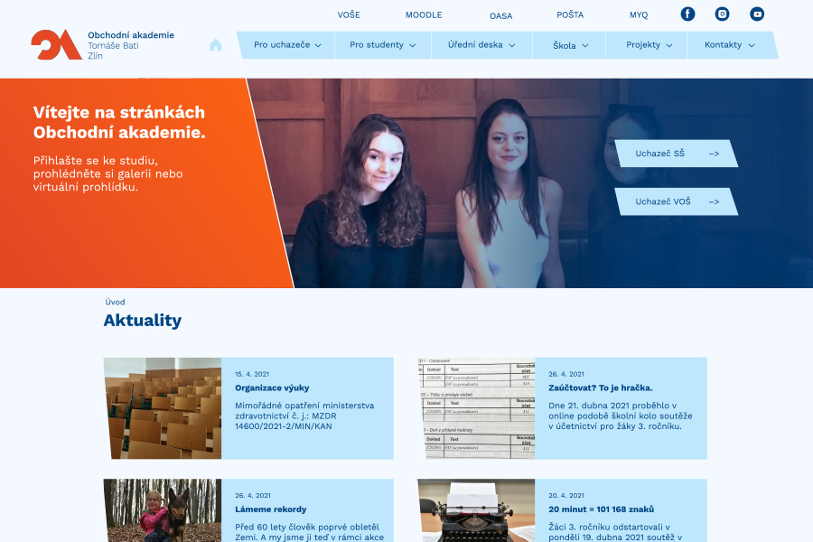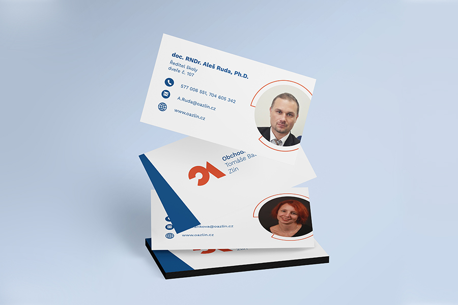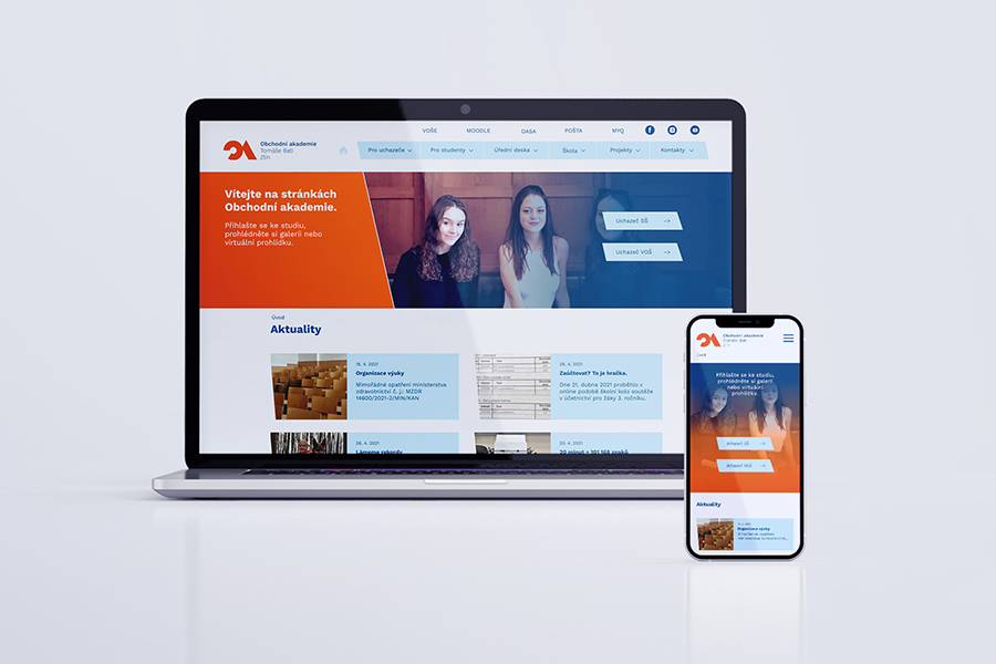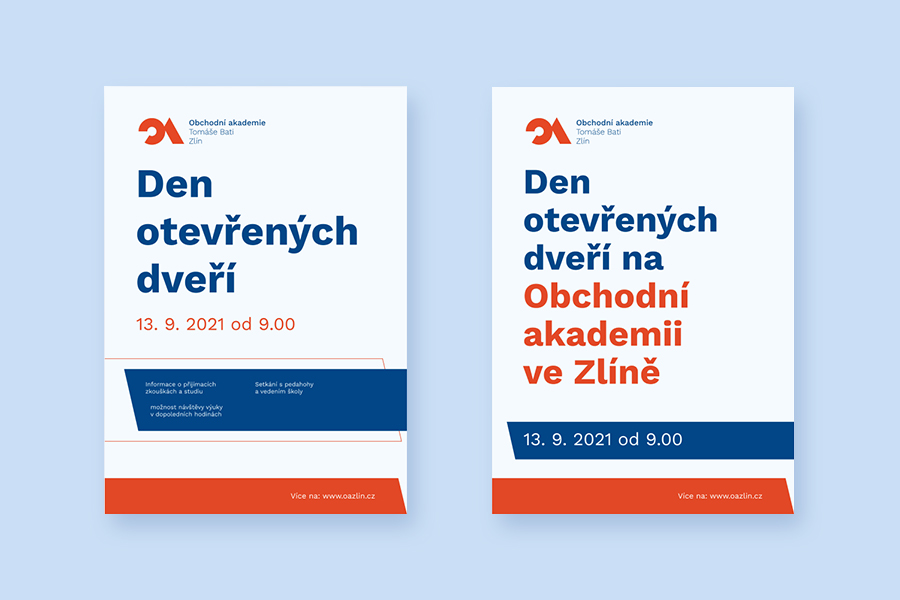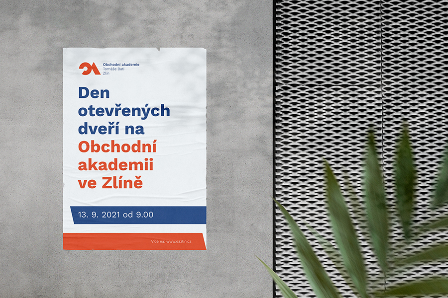 Vizuální styl Obchodní akademie Tomáše Bati Zlín pracuje s výraznou barevností a geometrickými tvary. Cihlová barva loga odkazuje na zlínskou architekturu a geometrické tvarosloví připomíná období funkcionalismu. Geometrie v logu může také připomínat koláčový graf, který evokuje ekonomické zaměření. Vizuální styl se na webu i v tiskovinách projevuje zkosením stran na určitých prvcích a často reaguje na tvar loga. Návrh využívá písmo Work Sans, které je velmi variabilní, má mnoho řezů a podporuje český jazyk.