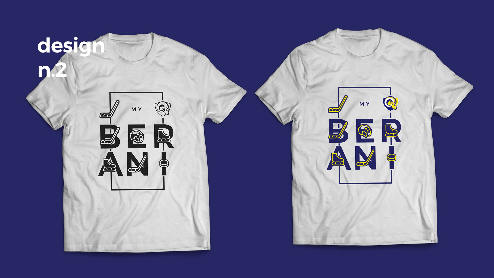 Cílem bylo vytvořit kolekci oblečení, která nebude na první pohled "hokejová", ale spíše módní. V kolekci jsem použil typografií, ilustrované symboly z hokeje (hokejka, puk, helma, brusle) a grafický motiv na způsob "alternativního loga", které by bylo použito pouze pro oblečení a případné doplňky.
