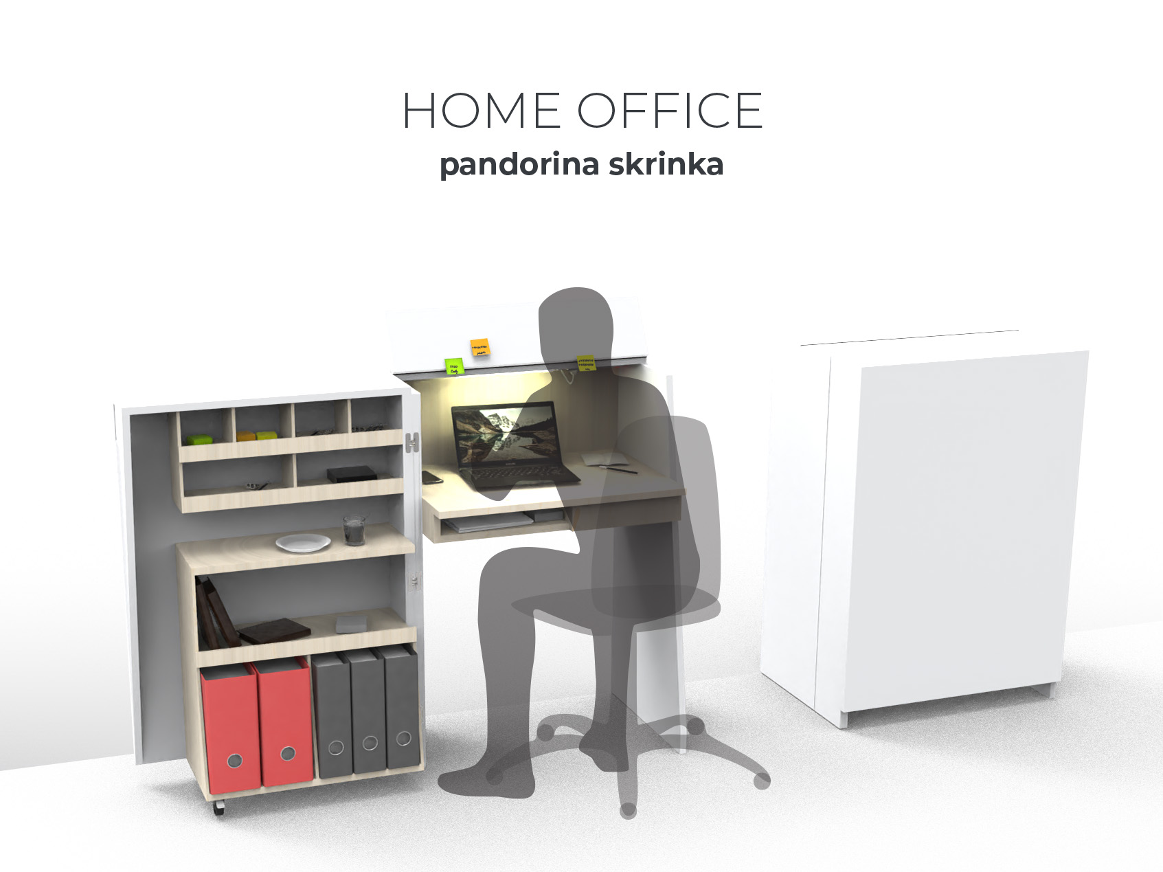 Pandorina skrinka vznikla ako reakcia na dopyt po pracovnom prostredí vytvoreného doma. Je určená pre jedného pracujúceho z domu, ktorý ku svojej práci potrebuje laptop a mobilný telefón. Poskytuje príjemné osvetlenie, samostatný zdroj pre 3 zariadenia a úložný priestor na kancelárske potreby. Zatvorením skrinky odchádza užívateľ z práce a viac sa k nej už počas dňa nevracia. Je k dispozícií vo dvoch farebných variantách.