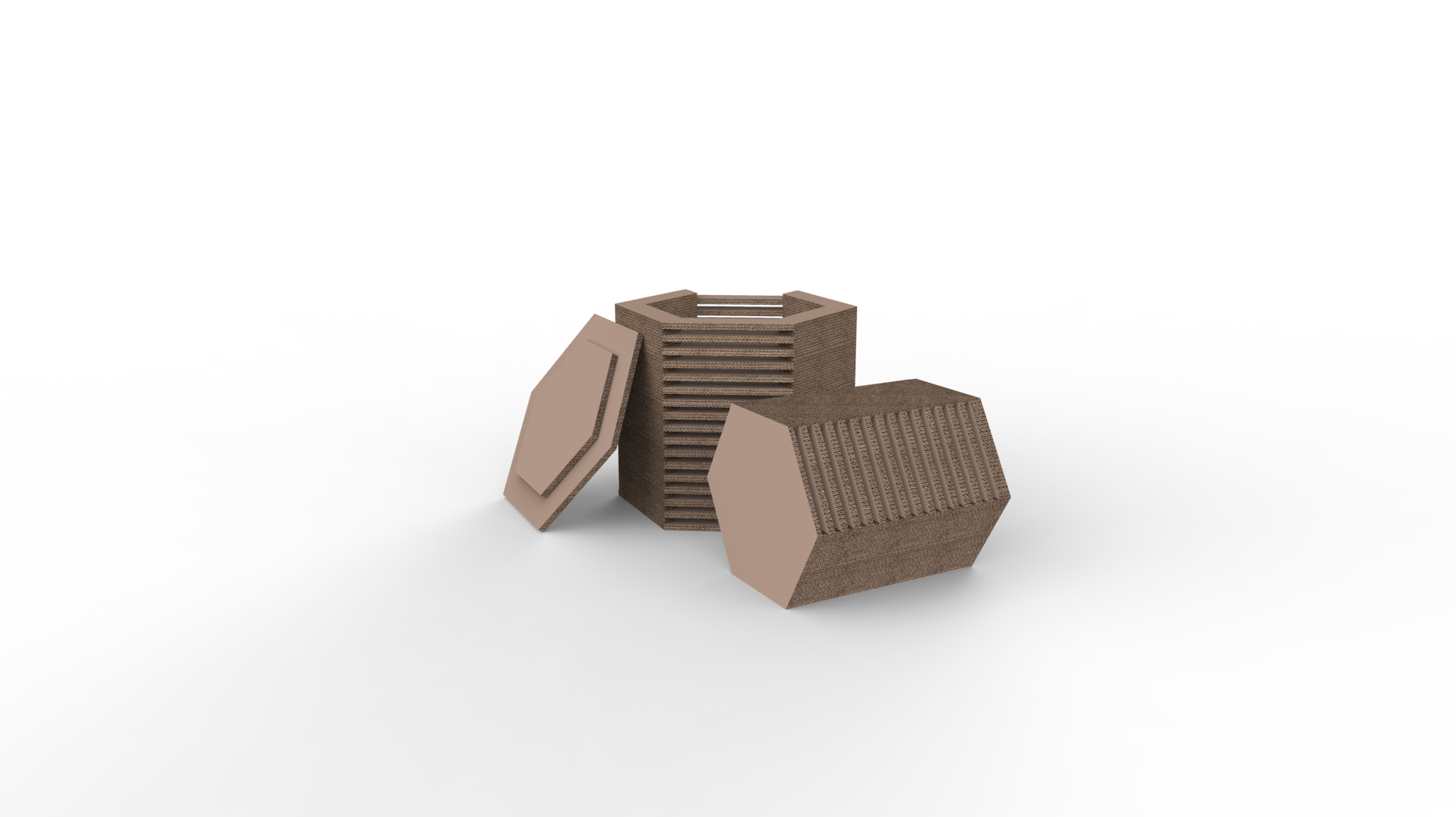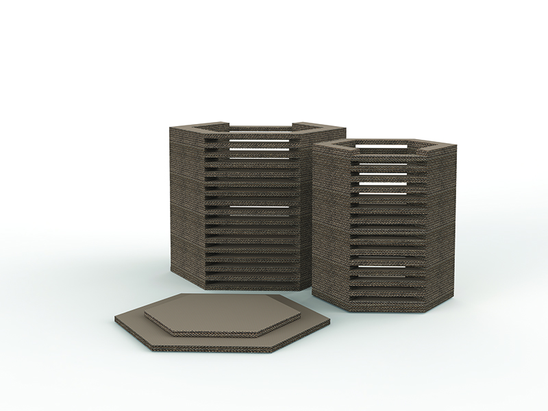 Projekt double hexa, je pokračovanie papierového nábytka z klauzurných prác z LS 2016. Ide o set sedacích prvkov, ktorý je inšpirovaný skladacím systémom matriošky. Je vytvorený z kartónu hrubého 1cm. Hmotnostná kategoria max. 90kg.