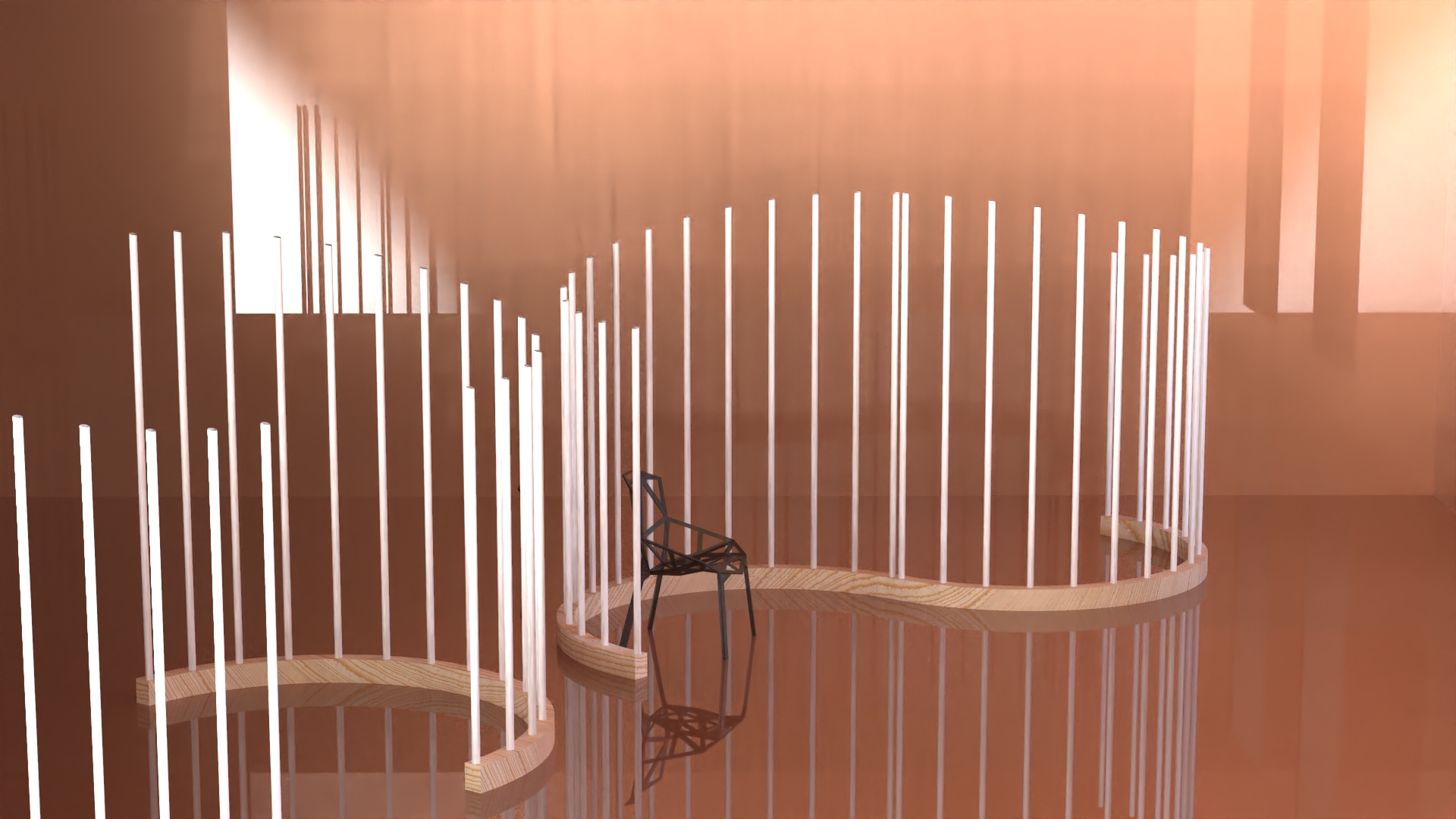 Zvolila som atypický tvar oblúka, kvôli stabilite, ktorú zaisťuje. Oblé tvary sú pre človeka príjemnejšie a vďaka jeho ohybom napomáhajú prirodzene vytvoriť súkromný priestor, v ktorom sa budeme cítiť prirodzene. Paravan je určený predovšetkým do kaviarní, poprípadne do chillzón. Človek si ho môže môže vyskladať podľa potrieb.