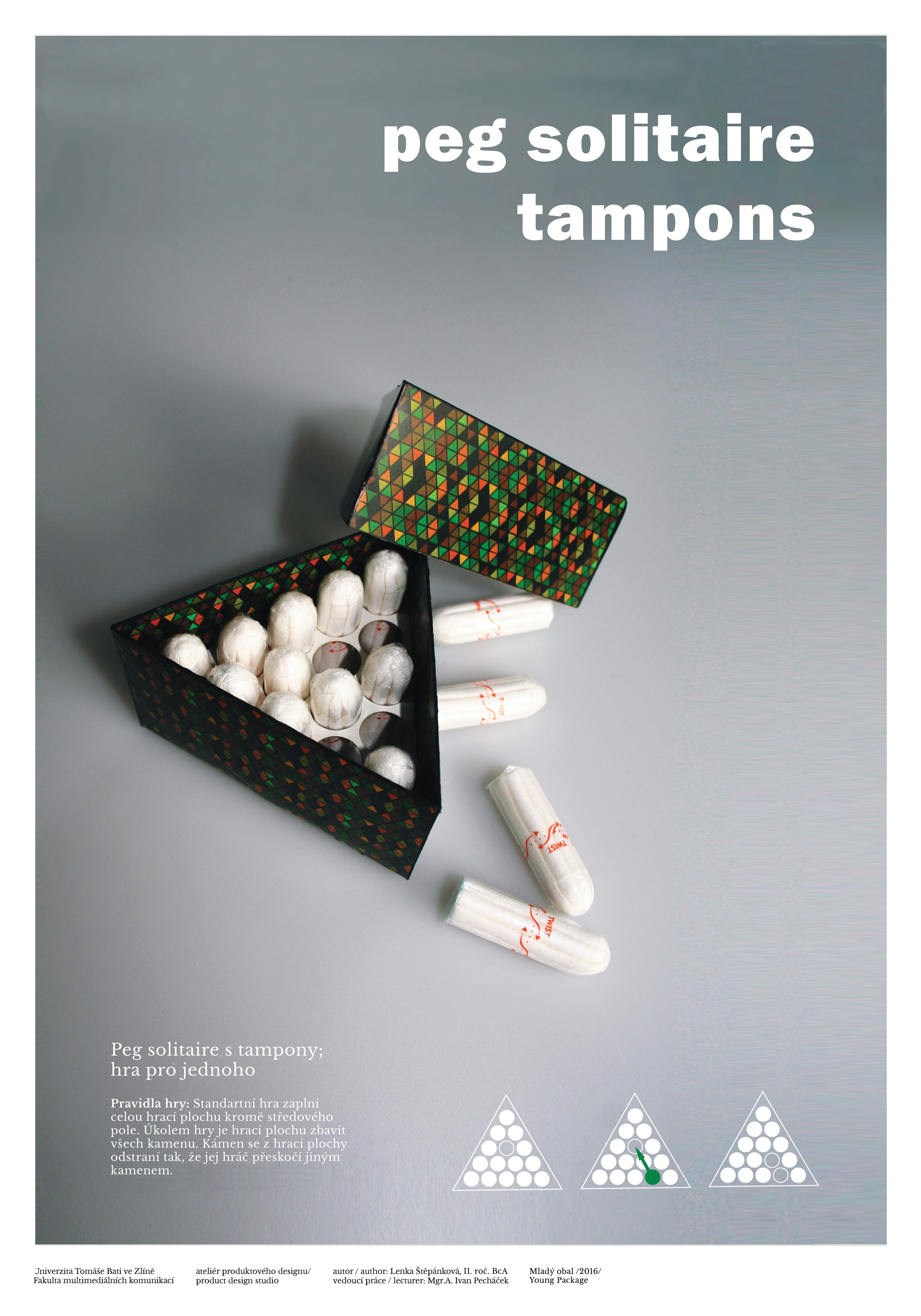 Příspěvek do soutěže Mladý obal 2017 na téma Obal jako hra - Krabička na tampony spojená s hrou peg solitaire