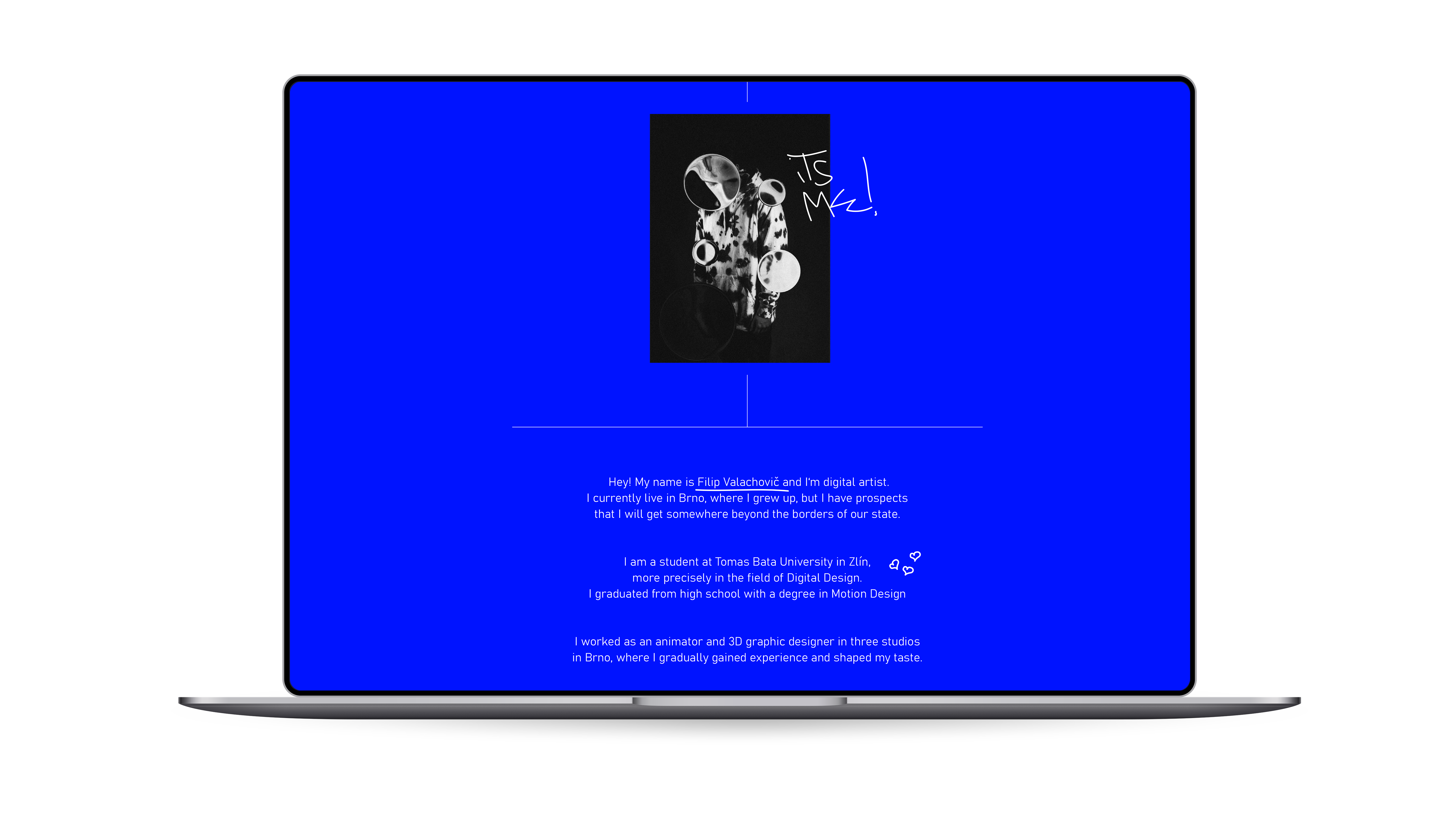 Za úkol bylo navrhnout si svůj vlastní web. Jelikož v momentální situaci web pro marketingové účely nepotřebuju, šel sem spíše artovějším směrem.