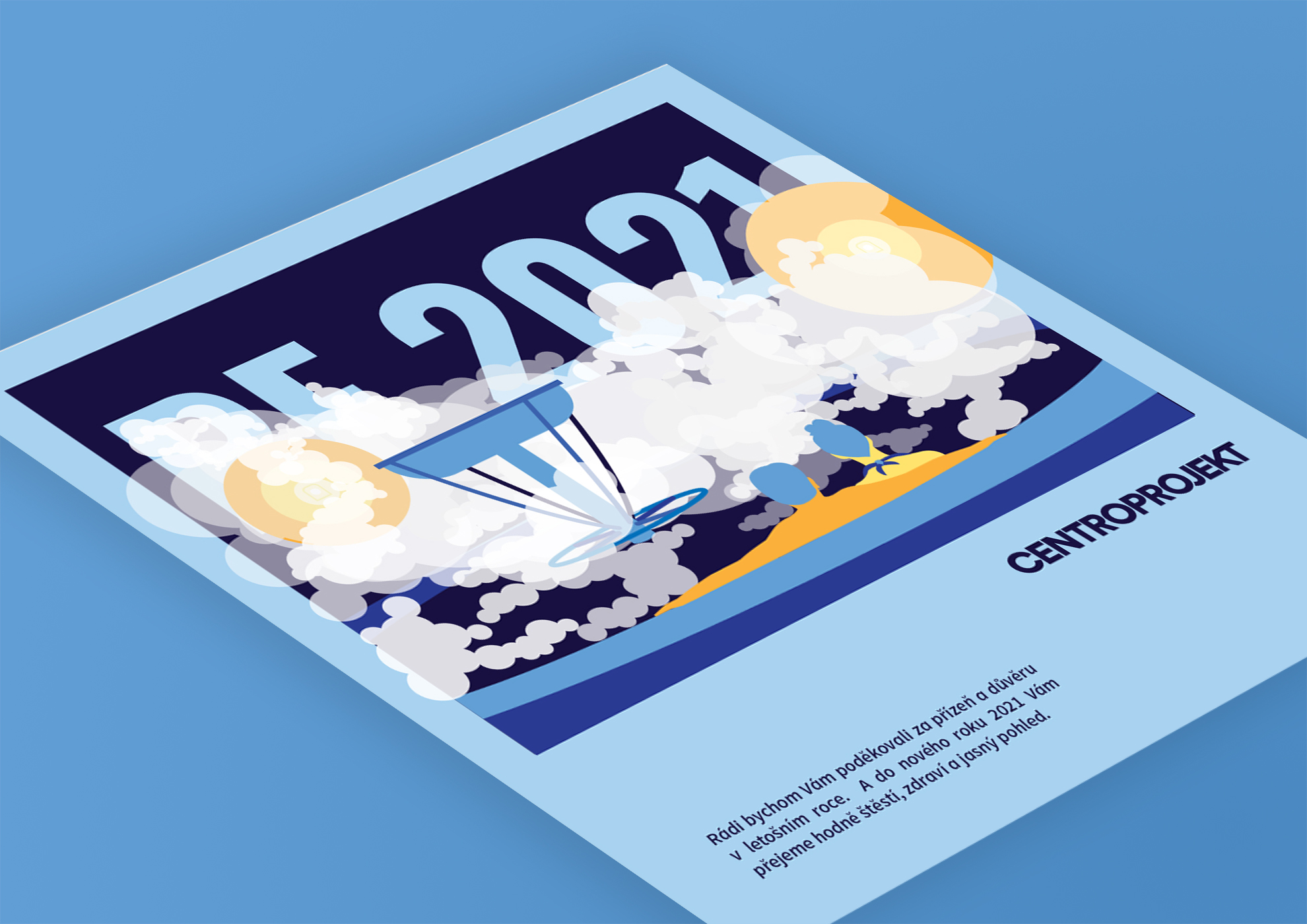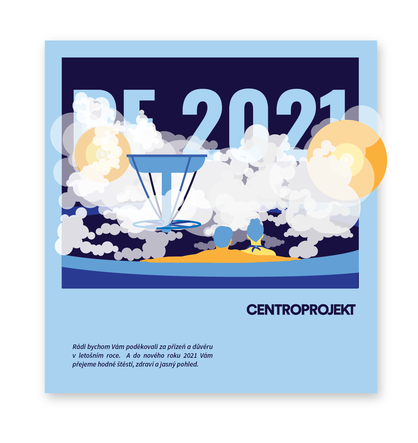Místní zlínská firma nás oslovila, abychom jim navrhli PF 2021, které se bude rozesílat emailem. Firma Centroprojekt se zabývá developerskými projekty a obzvlášť stavbou aquaparků a z toho důvodu jsem se rozhodla celé PF vytvořit s motivem bazénu a párou, která se odpařuje z důvodu okolního studeného vzduchu, abych navodila zimní atmosféru.
