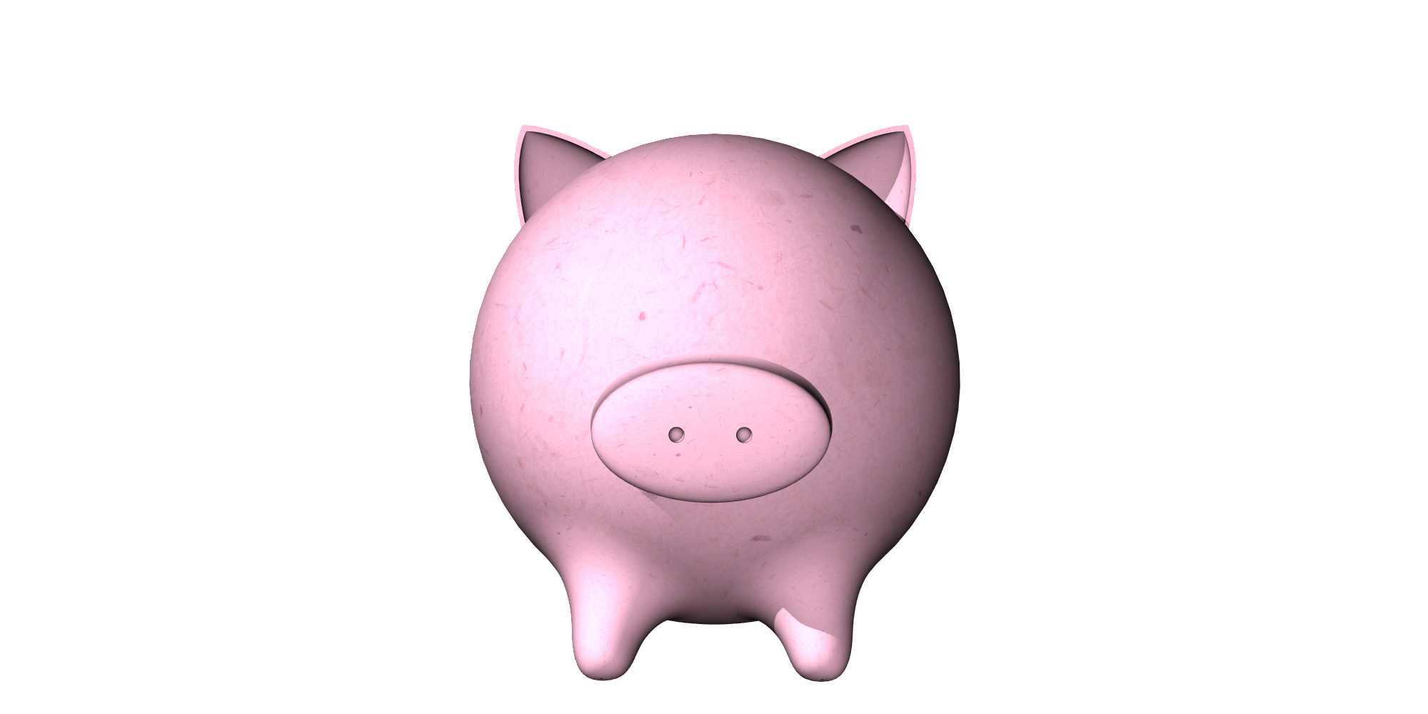 s dvomi prednými nohami, ktoré mu neumožňujú stáť, iba sa o ne opierať. Dizajn dotvára milý ňufák a dva rôzne otvory na mince. Po naplnení sa pokladnička jednoducho rozbije kladivom a zvyšky je možné vyhodiť do kompostu alebo papiera.