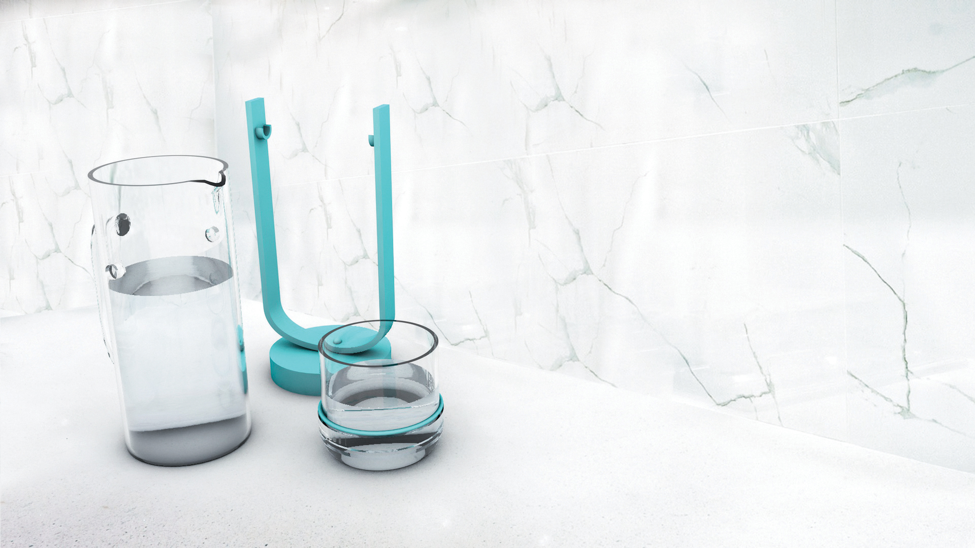 Cílem práce je návrh nádoby na tekutinu a nádoby na pití tekutiny, který uživateli umožní nebo pomůže s dodržováním pitného režimu. Stojan je vyroben z polyethylenu, džbán a sklenička jsou ze skla, a na skleničce se navíc nachází silikonový proužek v barvě stojanu. Objem džbánu činí 1 litr, objem skleničky je 200 mililitrů. Džbán se umisťuje do stojanu, který zaručuje lepší manipulaci s nádobou, ve které je voda. Skleničku lze vsunout do džbánu, vznikne tak jeden kus, což je pohodlnější při přenášení. Silikon okolo skleničky zabraňuje vylití tekutiny během přenášení džbánu.