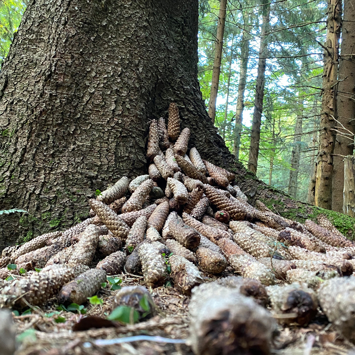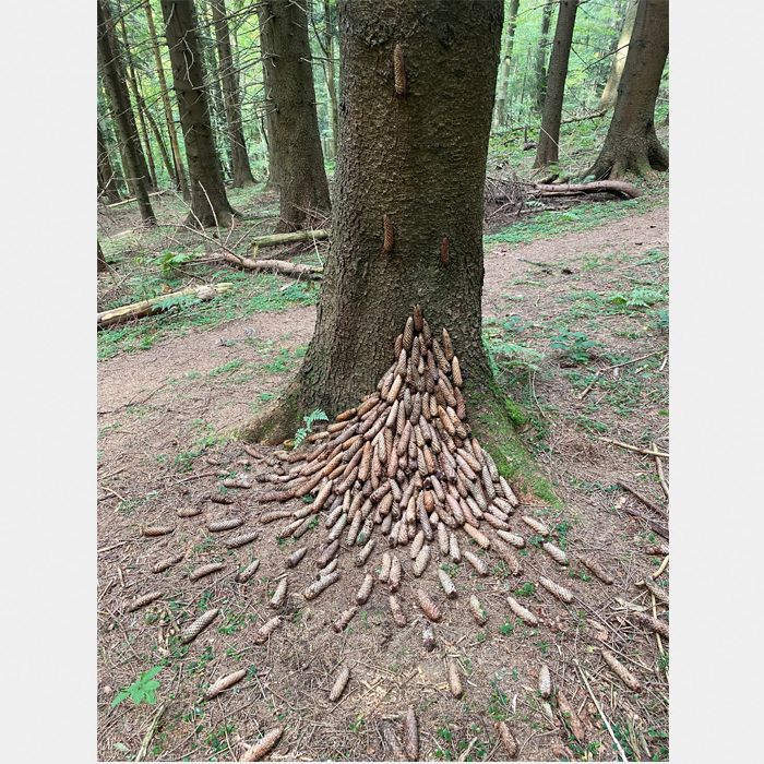 Co by se stalo, kdyby se popadané šišky chtěly dostat znovu na strom? Přesně tuto situaci jsem se snažil zachytit pomocí mého Land art na plenéru 2021