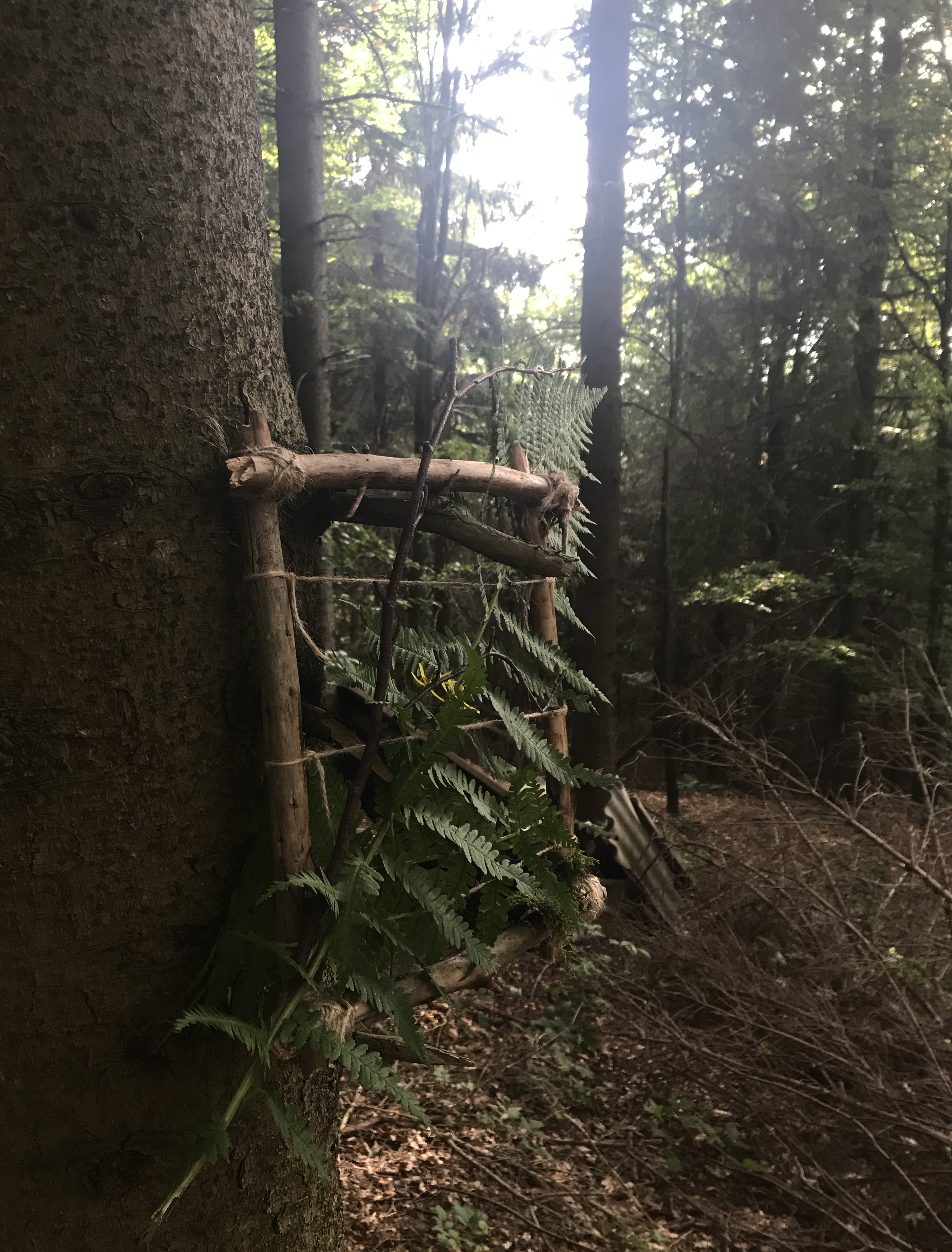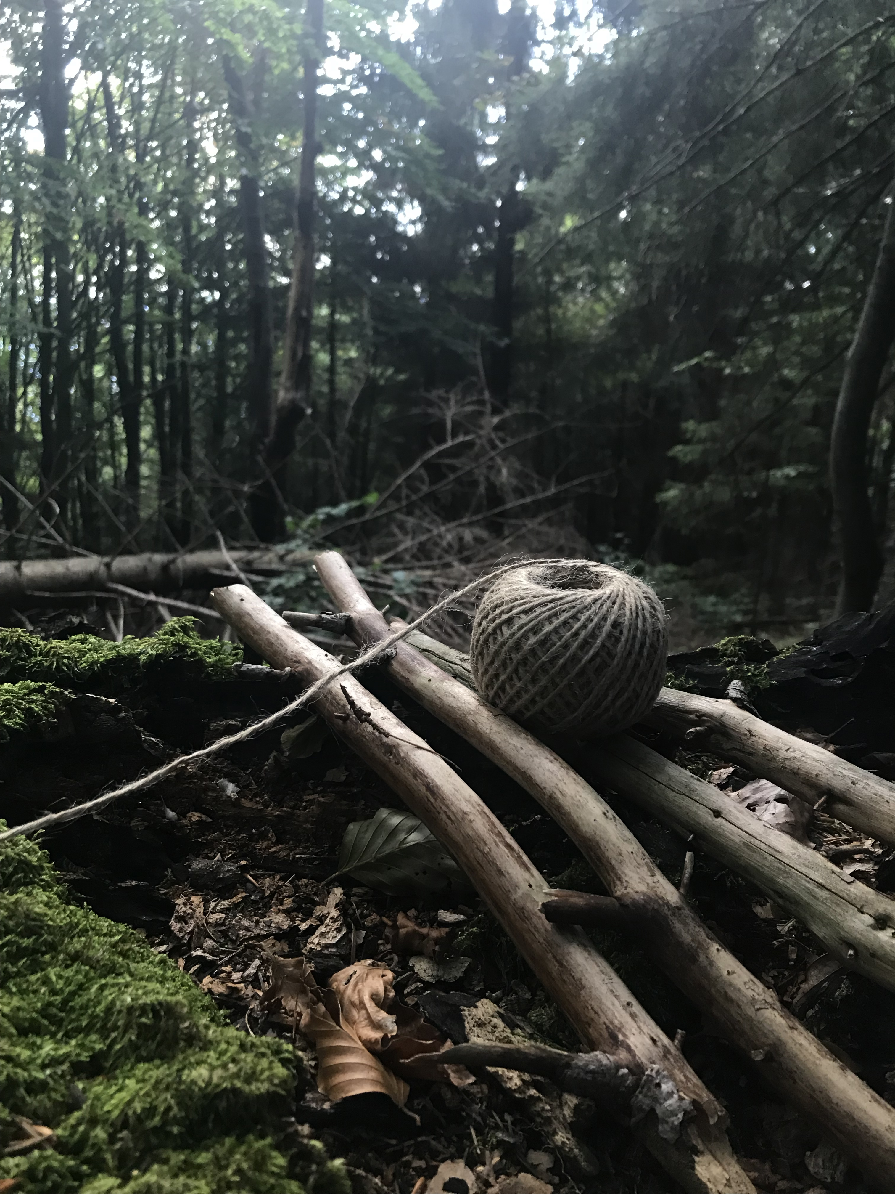 V rámci ateliérového plenéru jsem zpracoval tzv. "živý obraz" složený z volně dostupných materiálů přírody (navíc jsem použil špagát pro svázání).